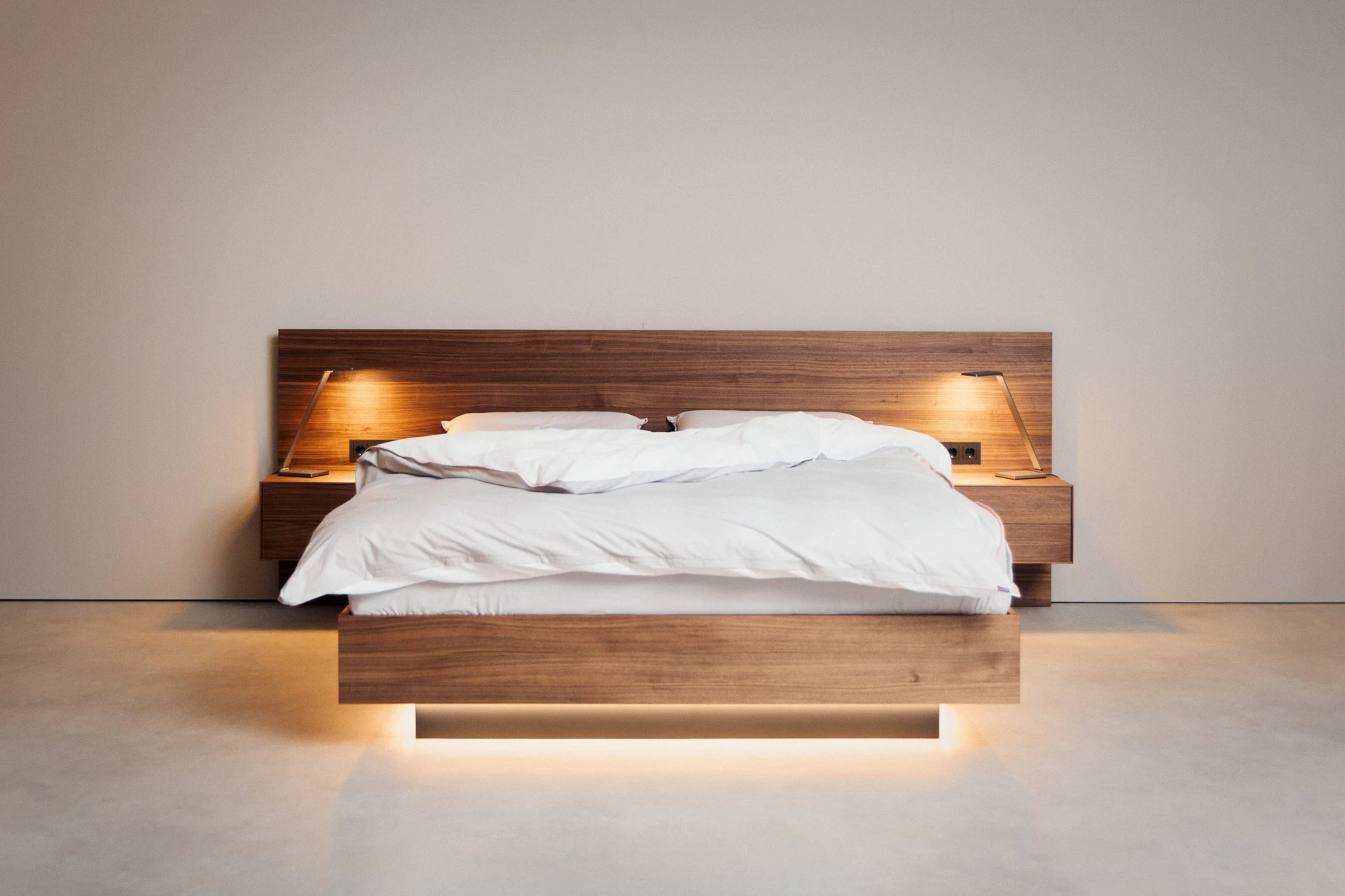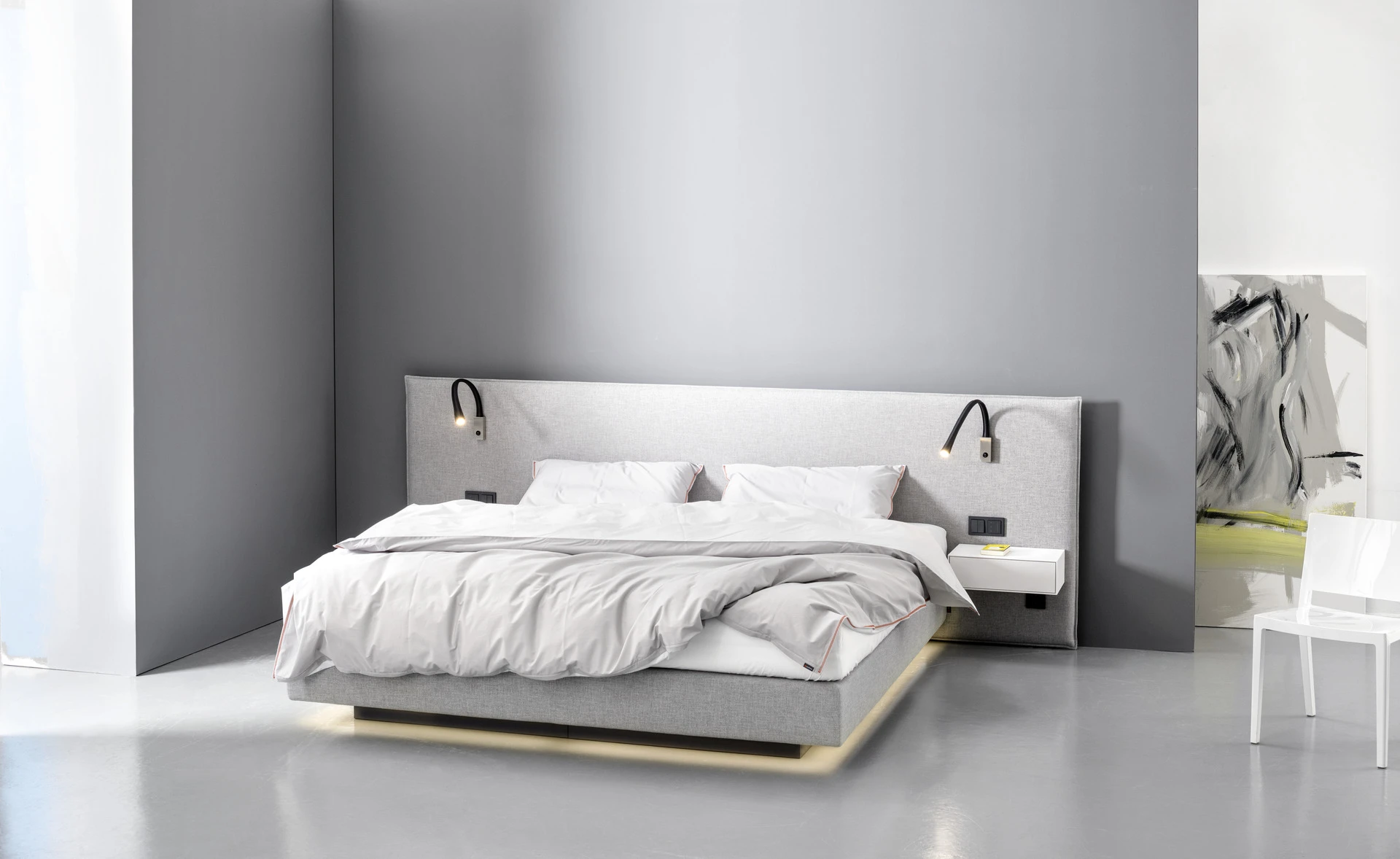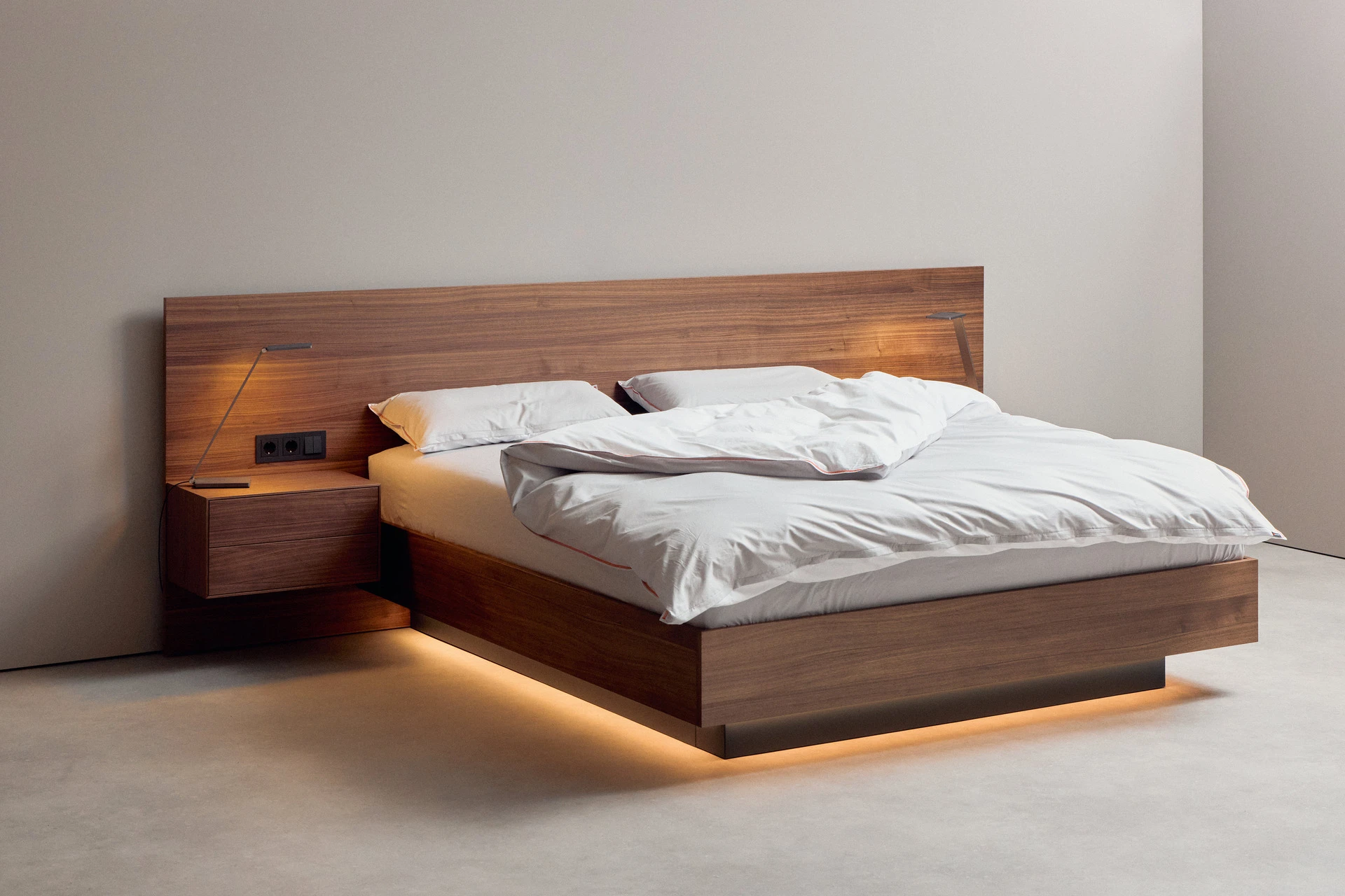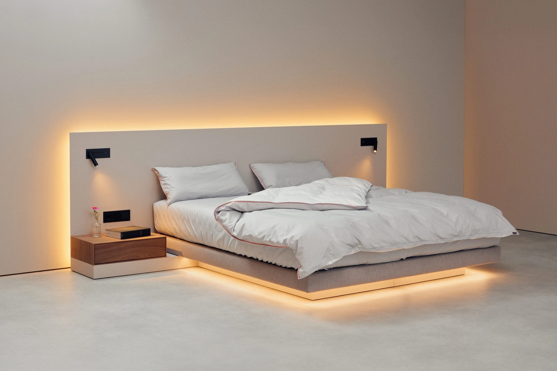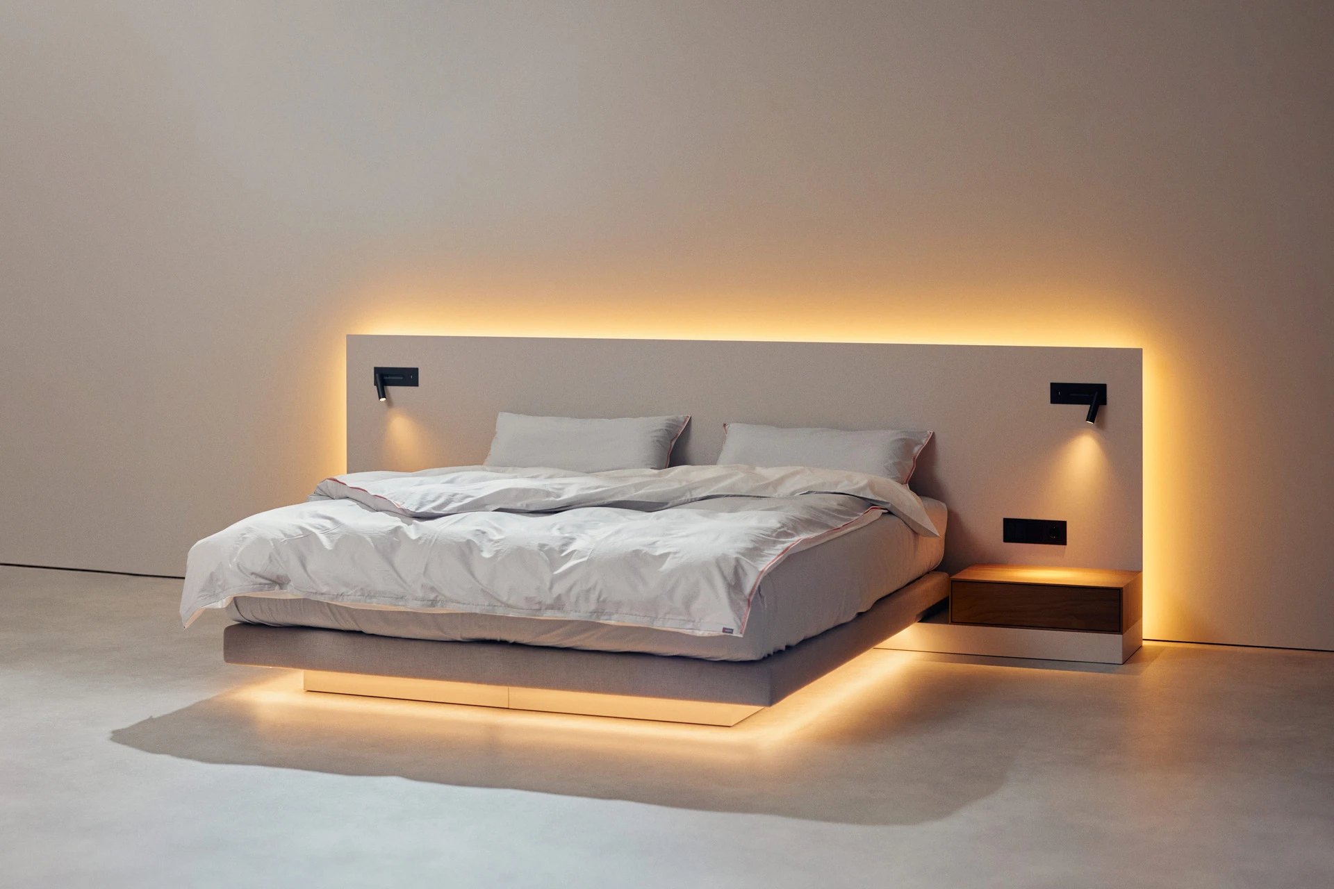 - Indirekte Unterbett-Beleuchtung mit neutralweißen LEDs