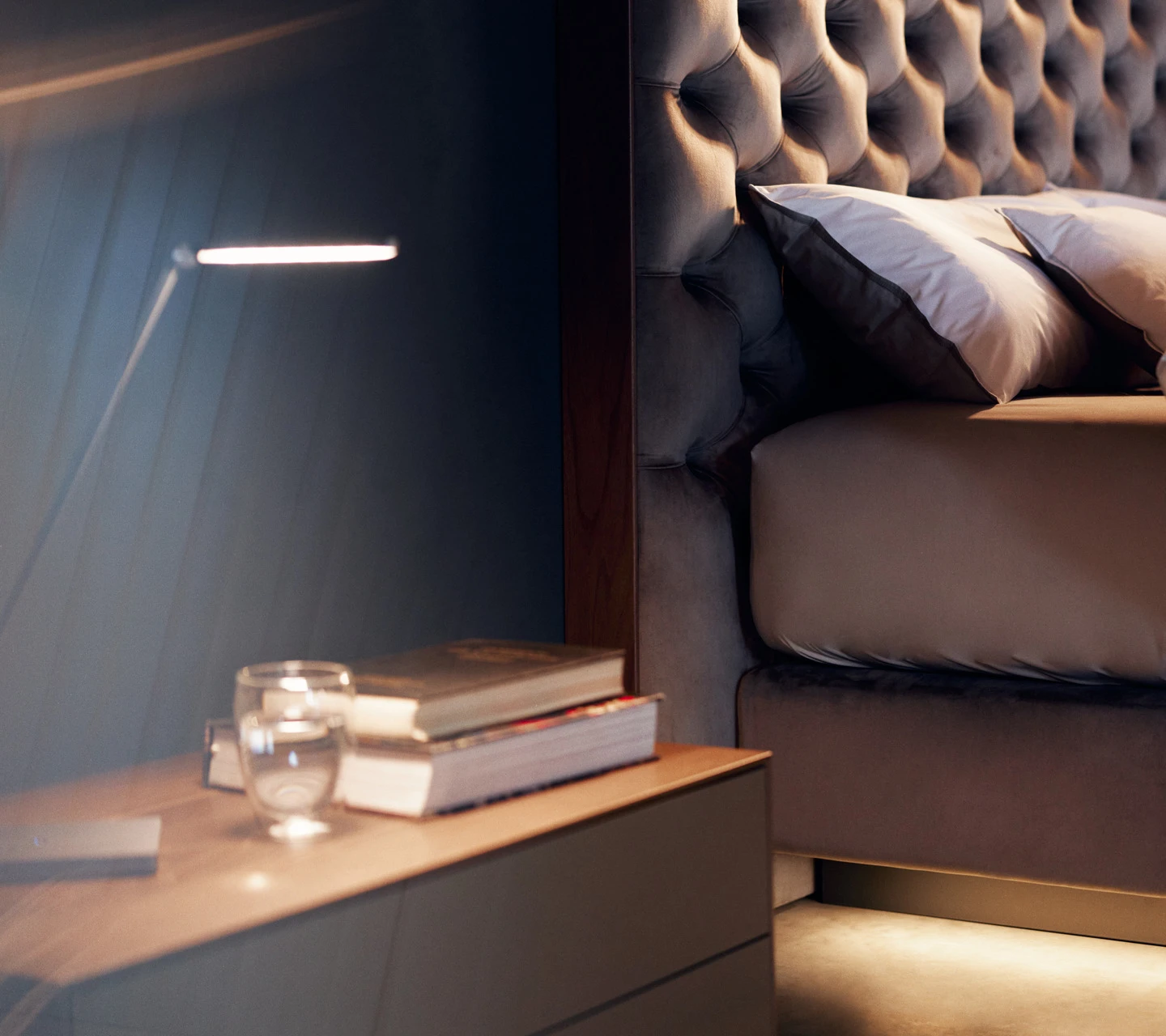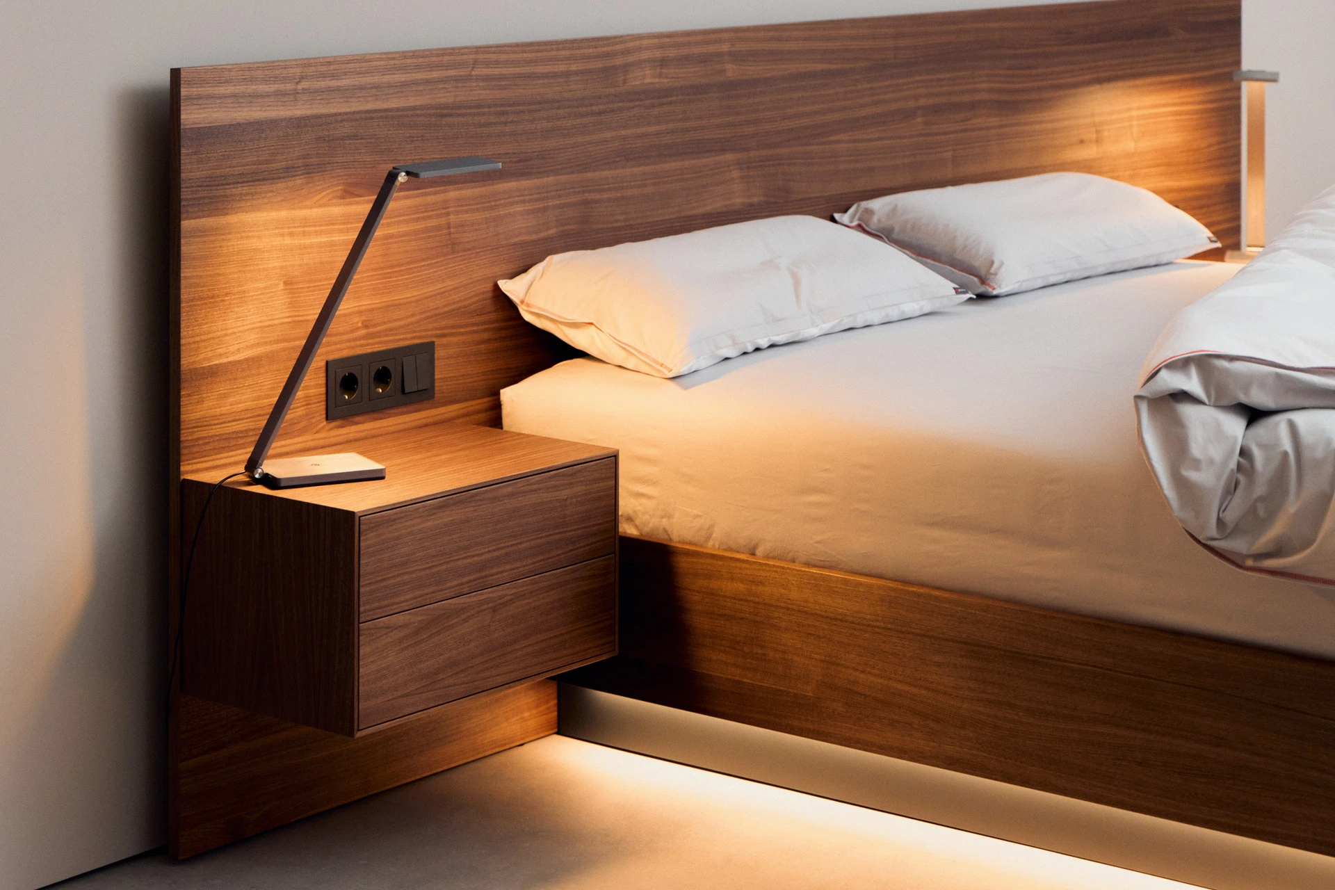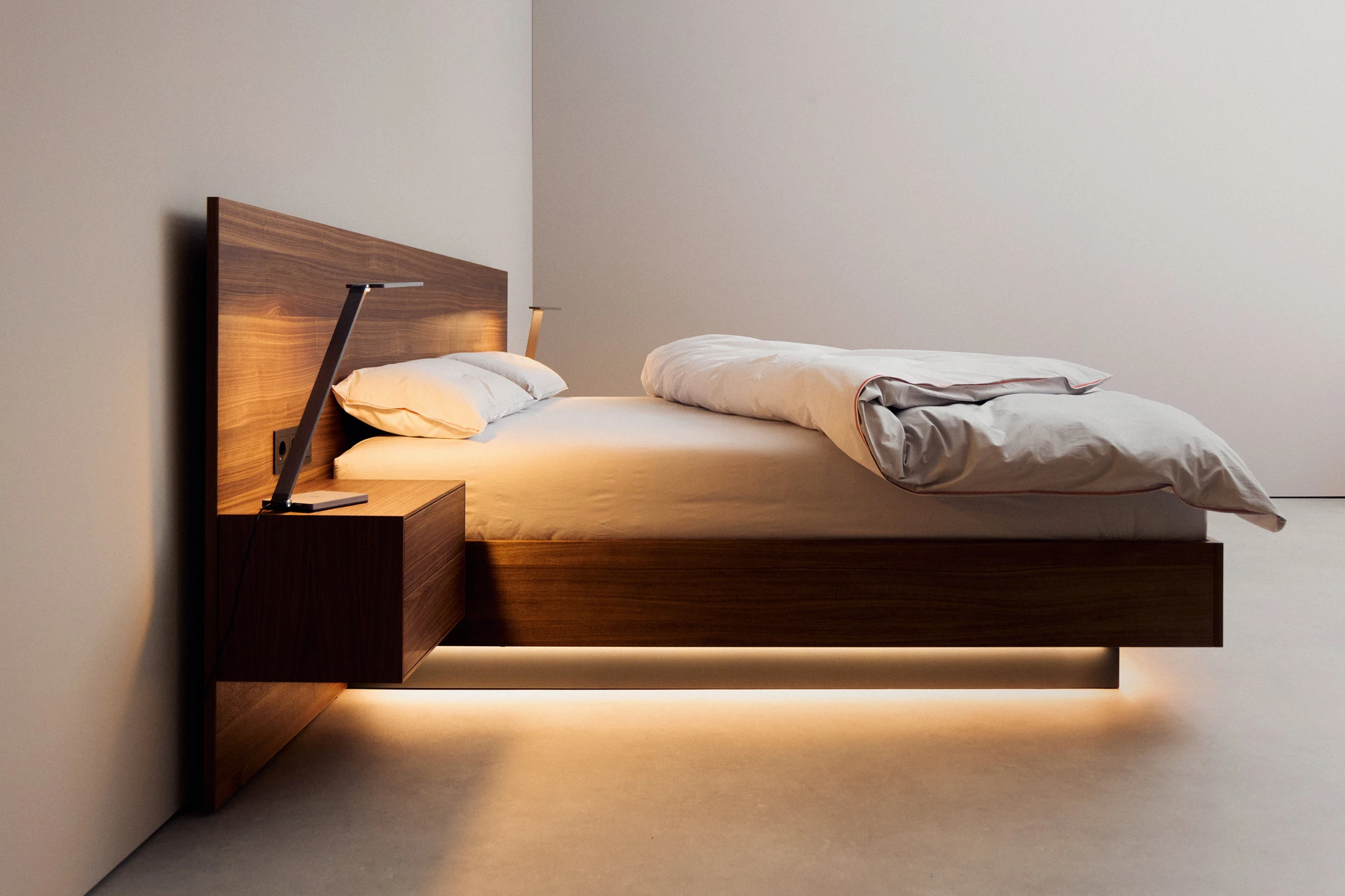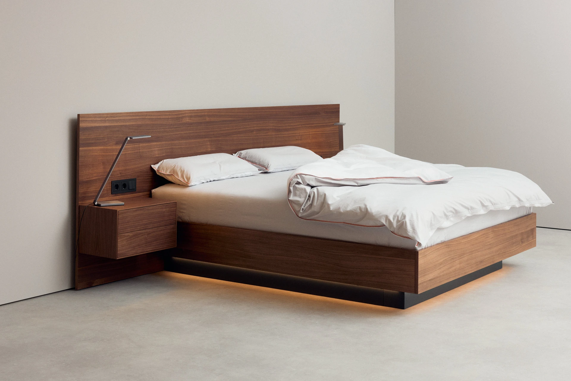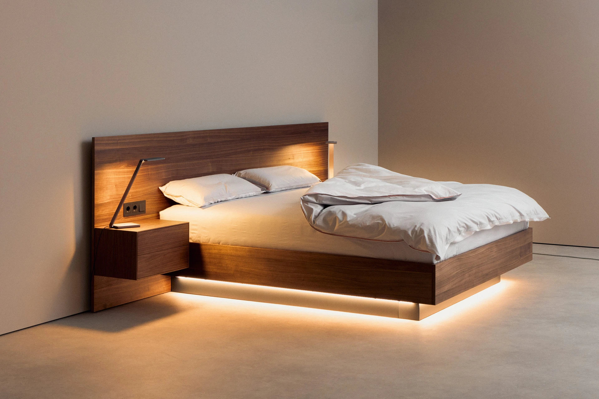 - Indirekte Unterbett-Beleuchtung mit neutralweißen LEDs