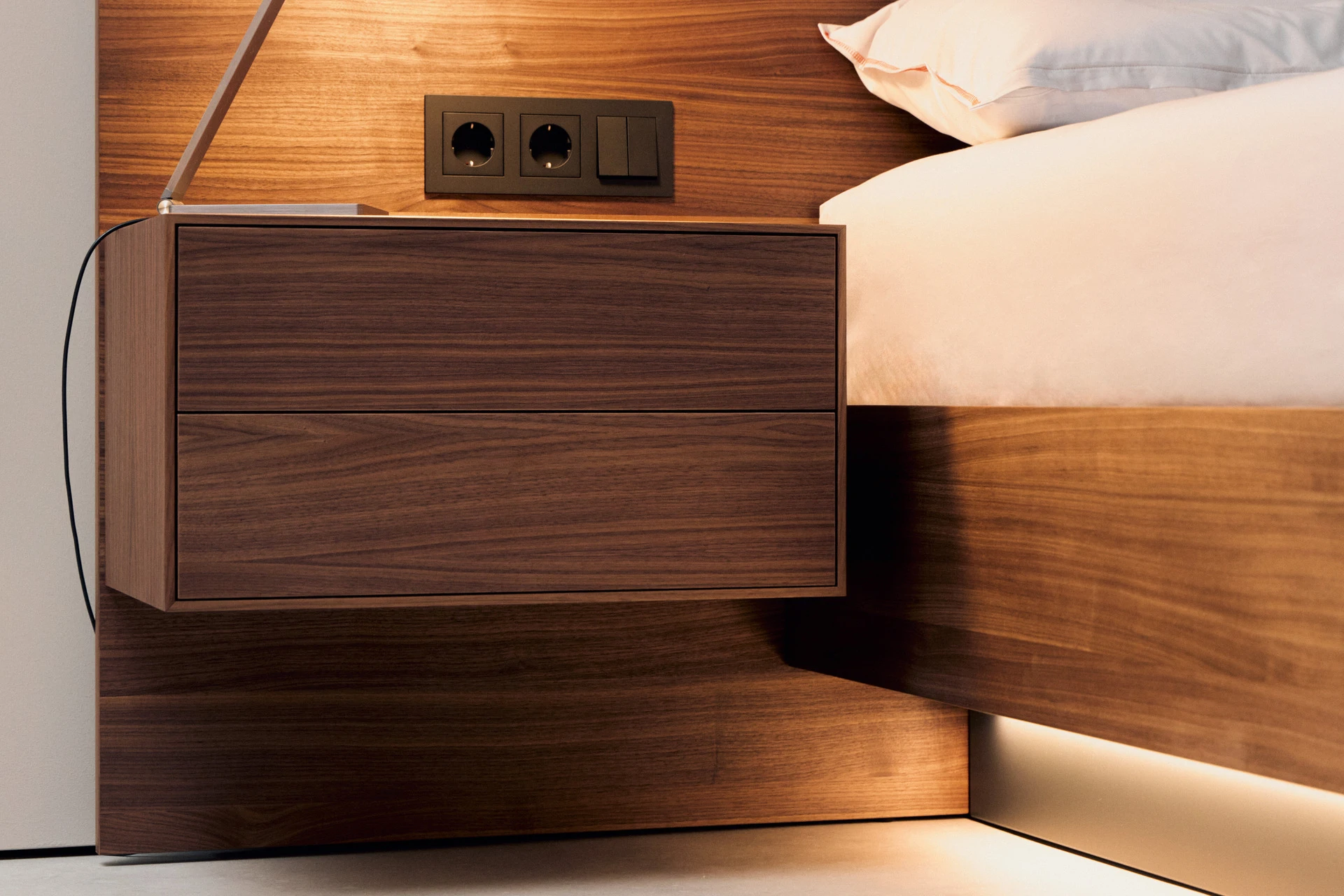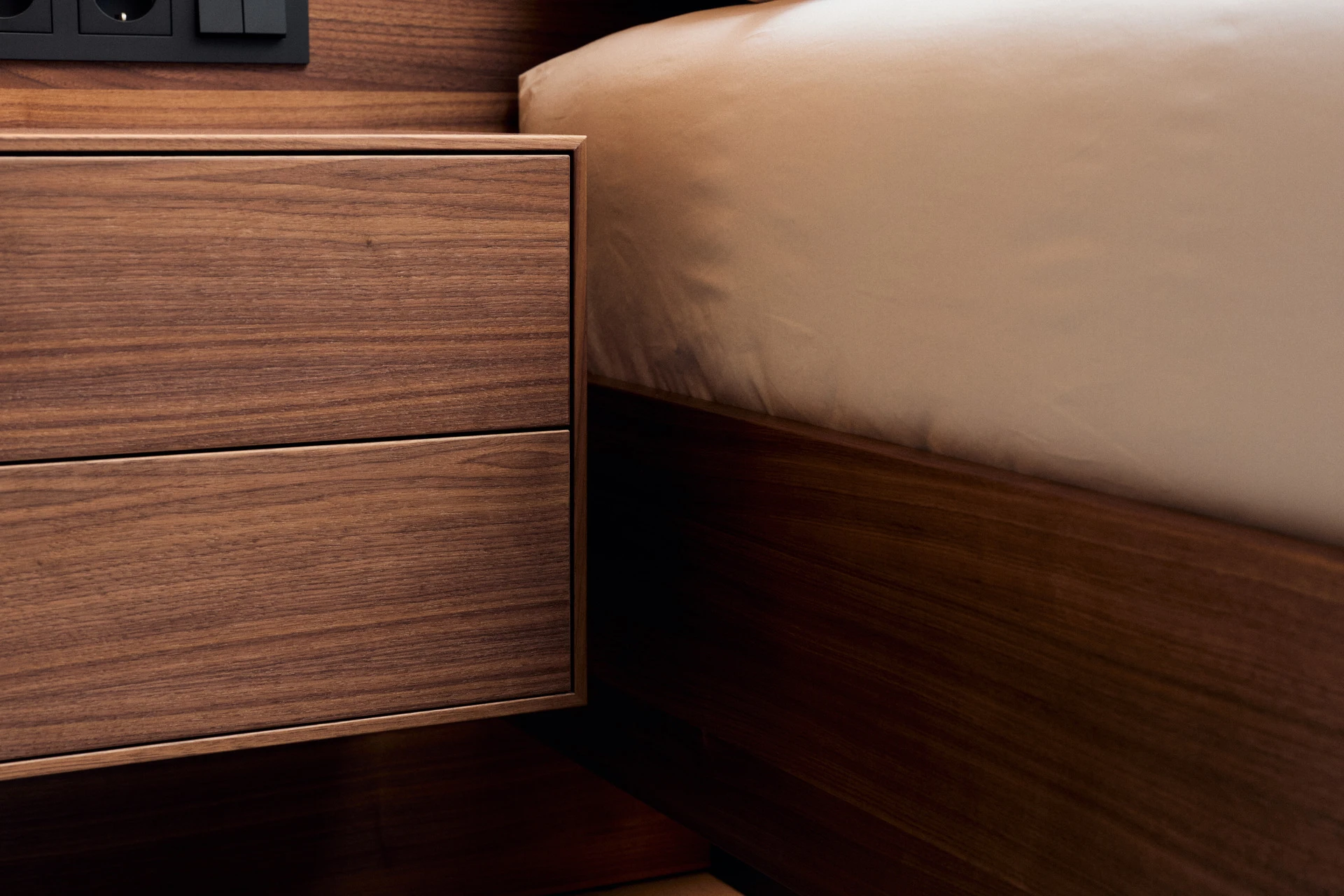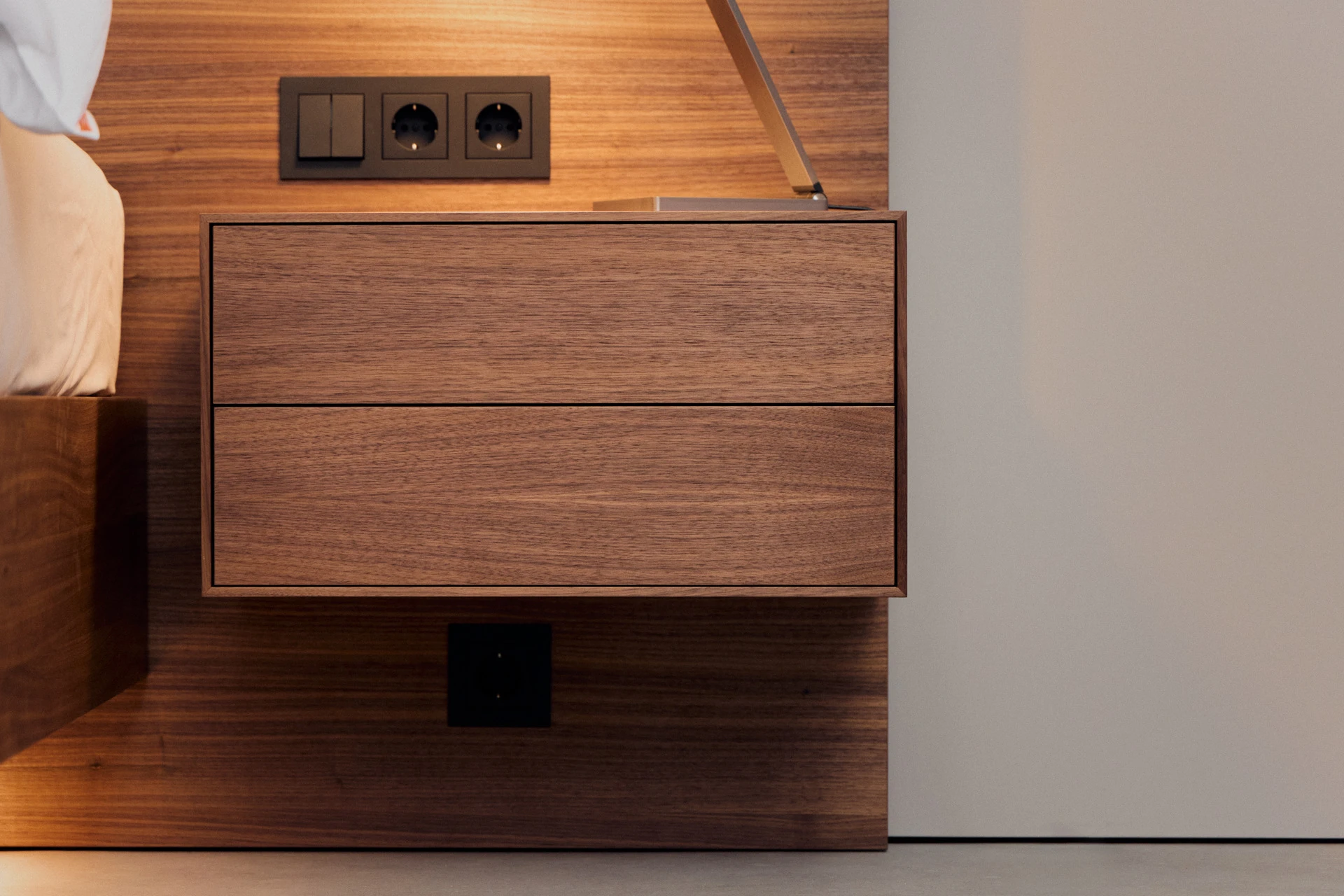 - Nachttisch aus amerikanischem Nussbaum, Schubladenfronten beschichtet mit Fenix NTA, Schublade mit Touch-to-Open und Soft-Close Funktion