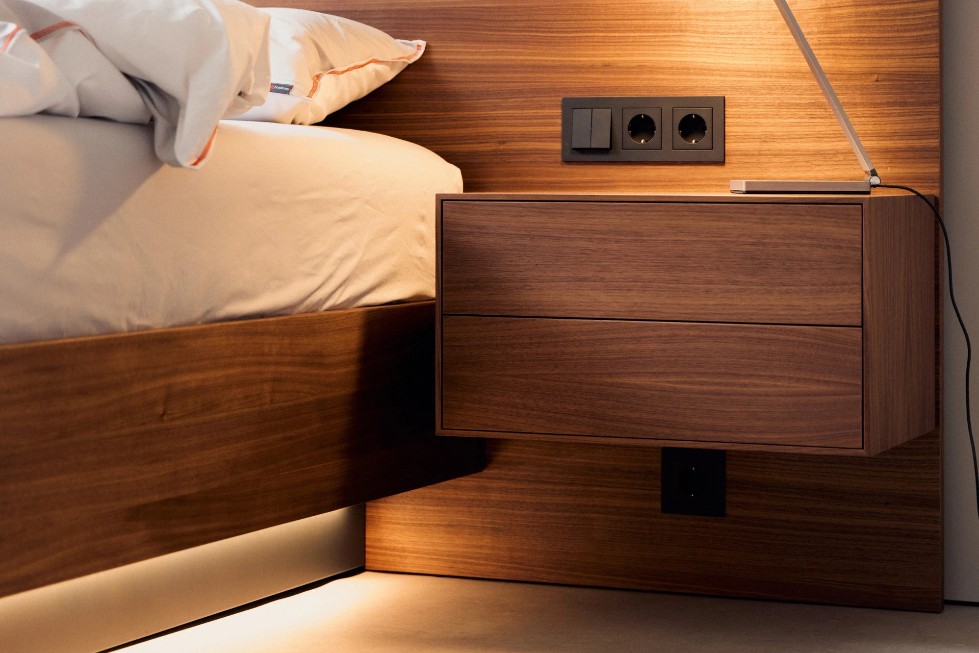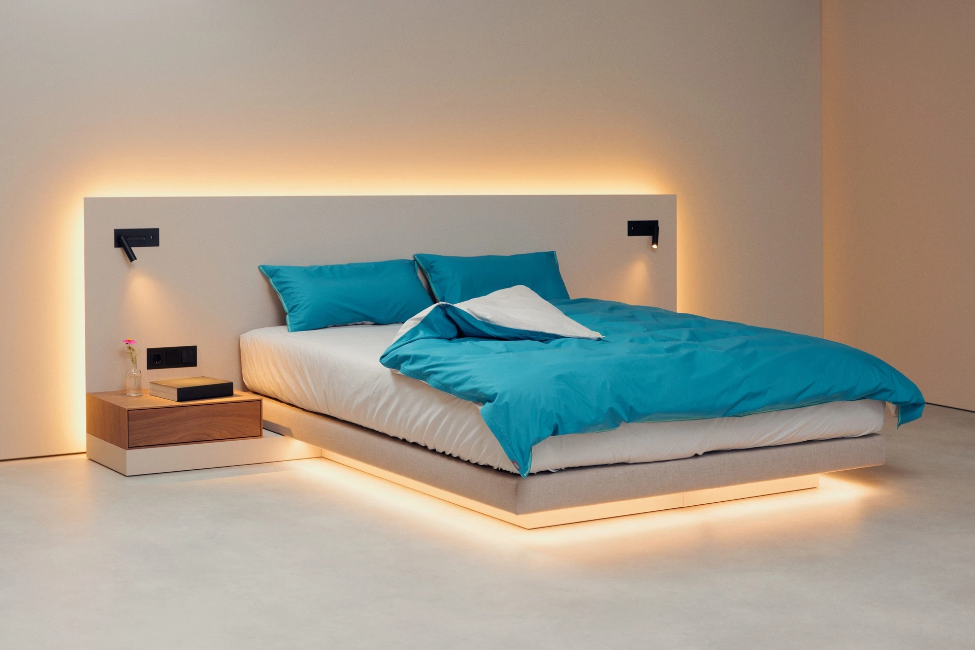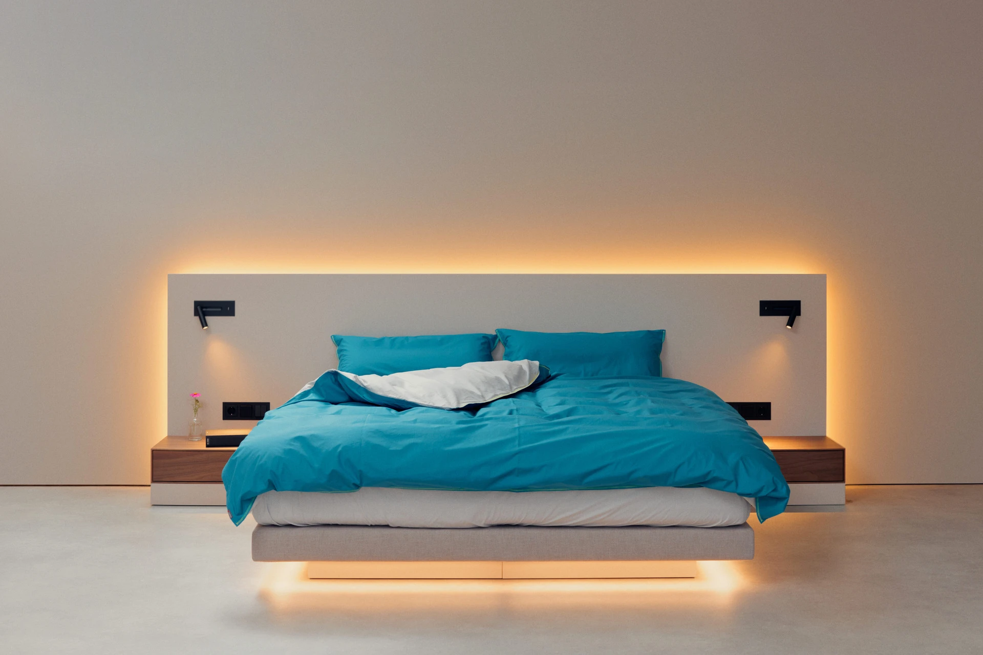 - Indirekte Unterbettbeleuchtung mit warmweißen LEDs