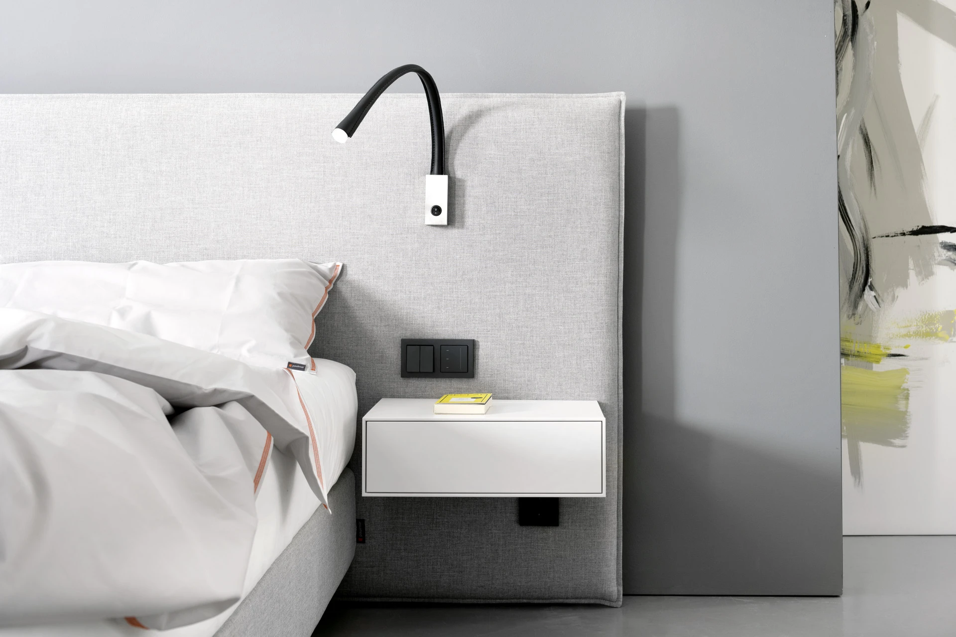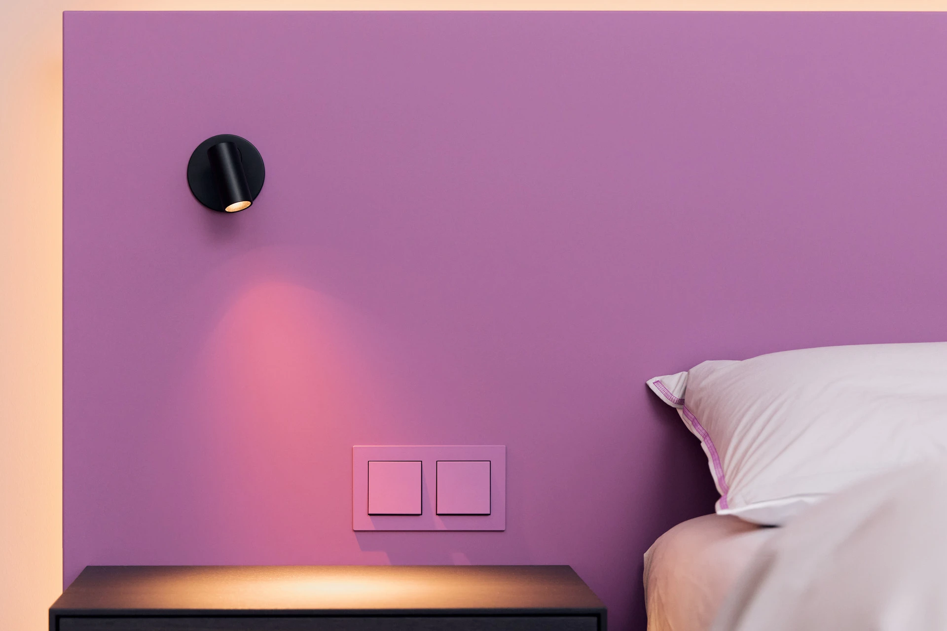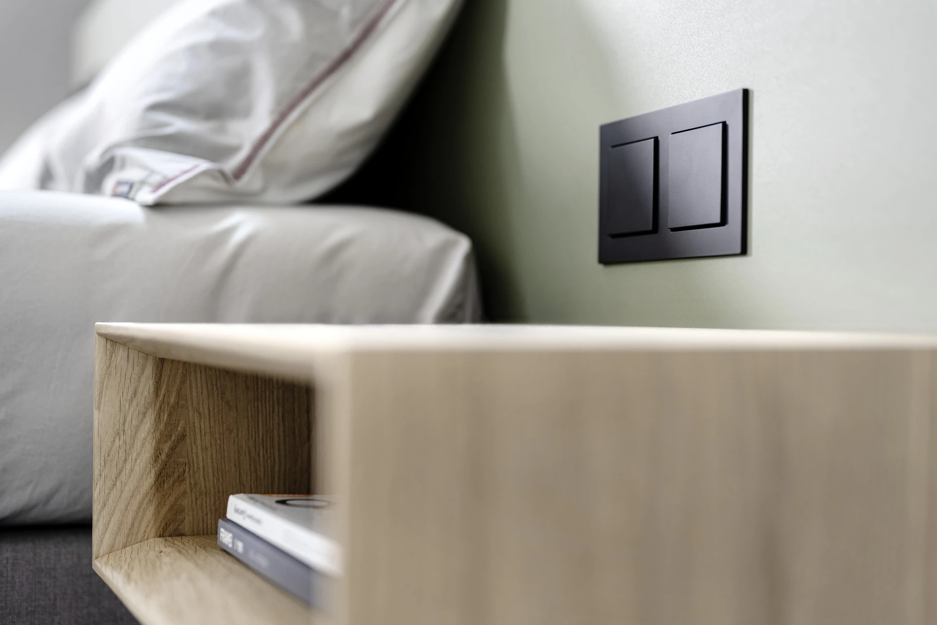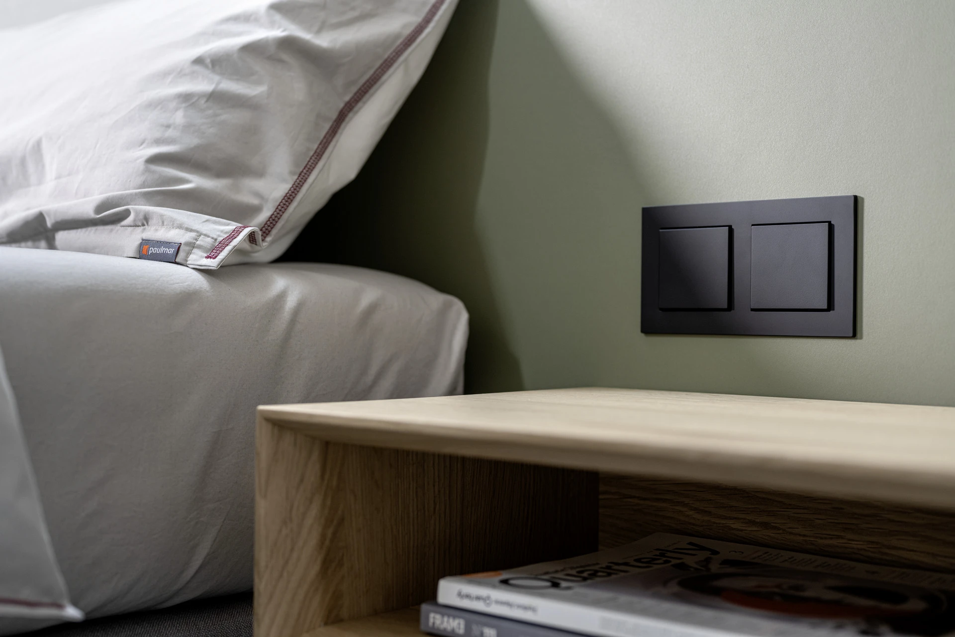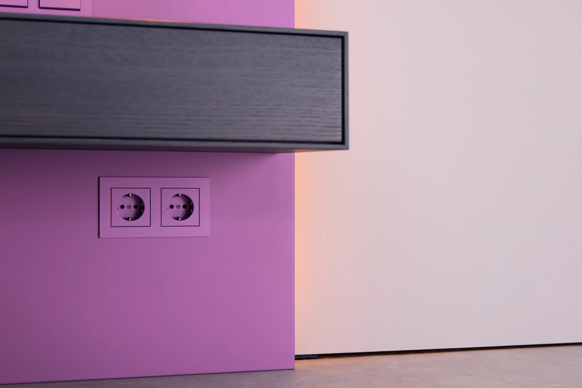 - Extra flache Schalter und Steckdosen in Bettfarbe lackiert