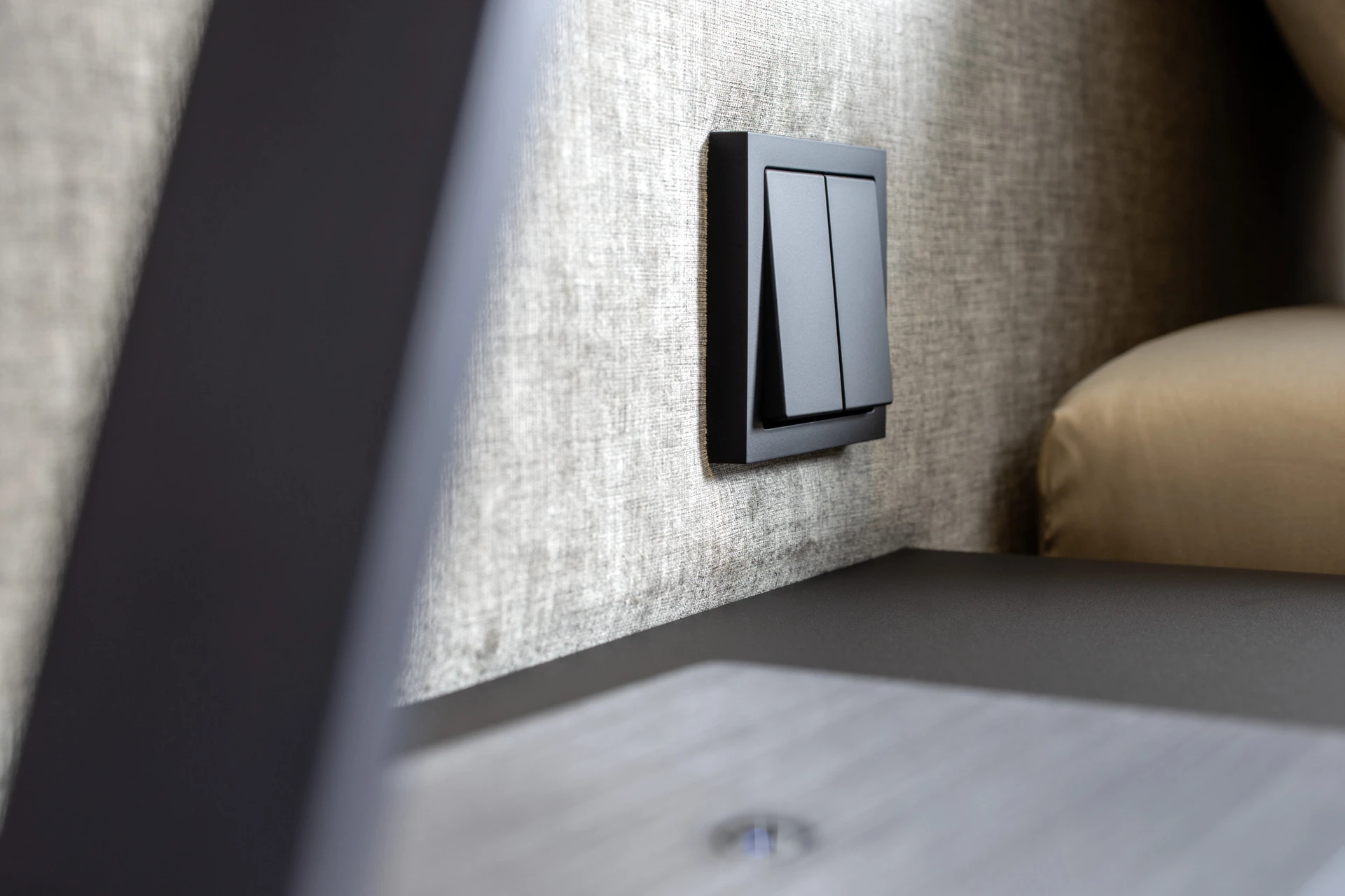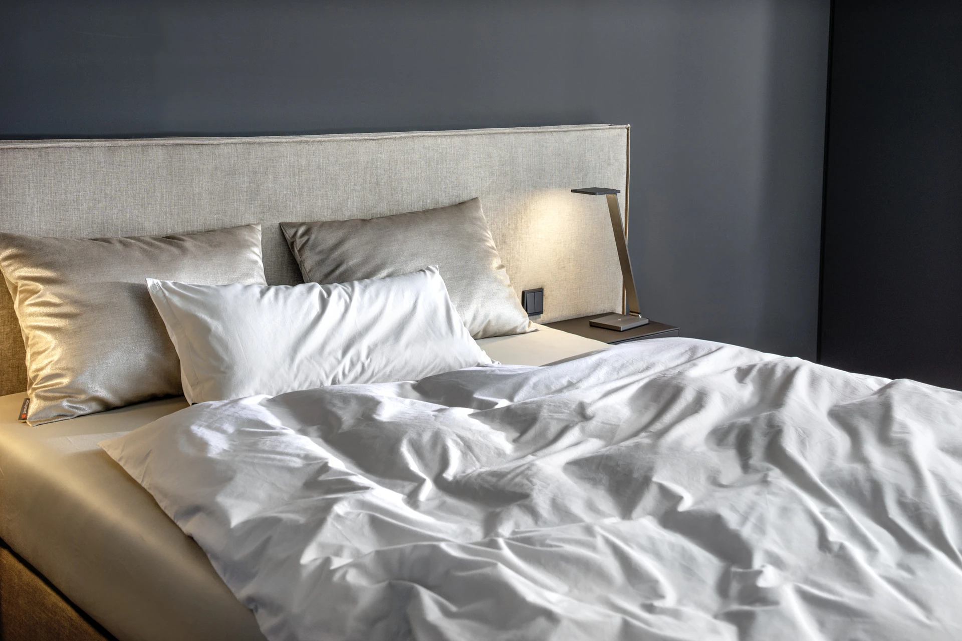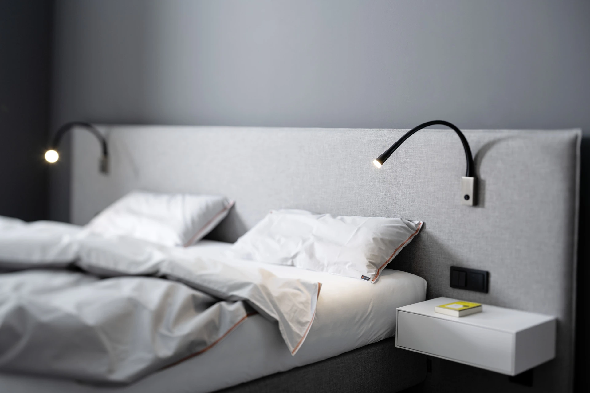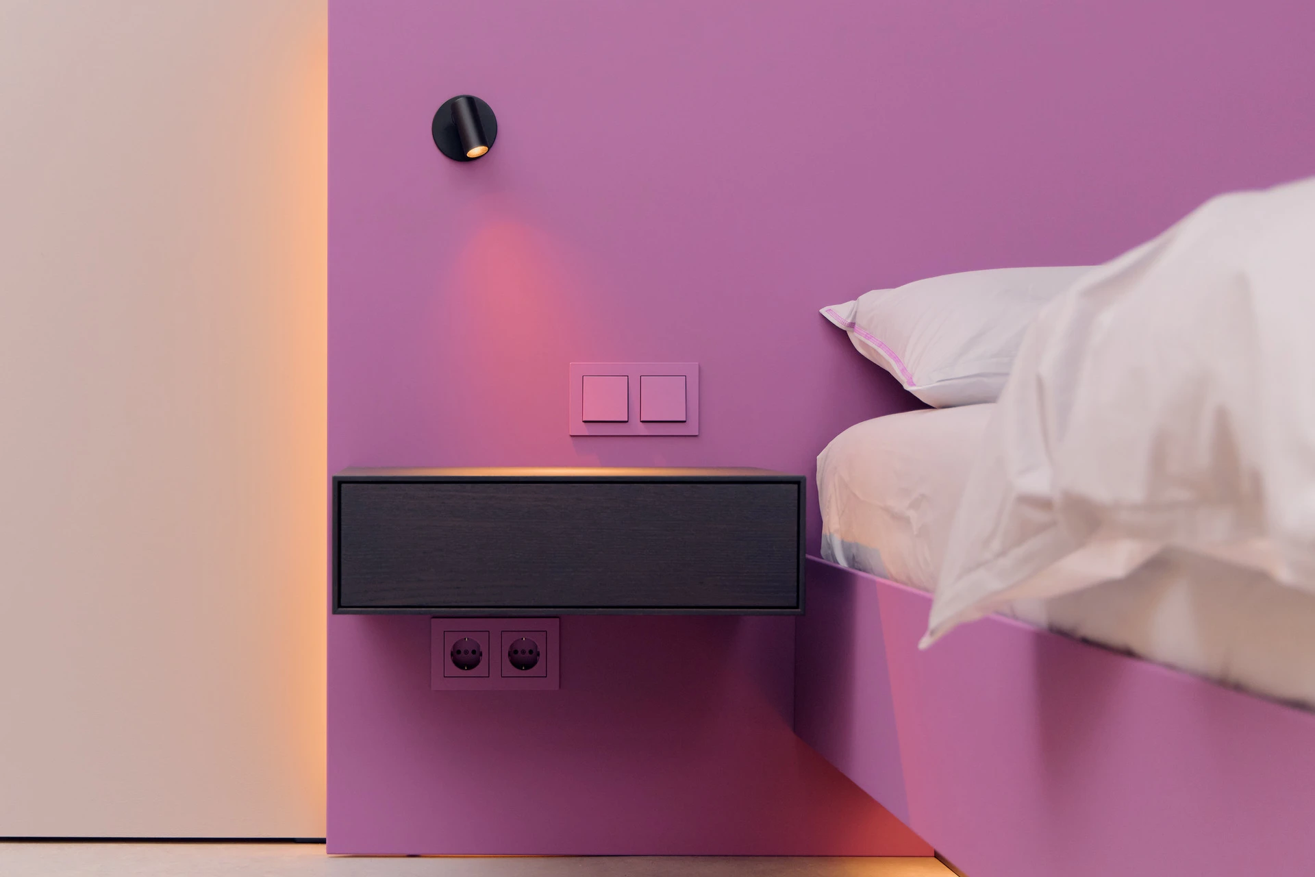 - Extra flache Schalter und Steckdosen in Bettfarbe lackiert
