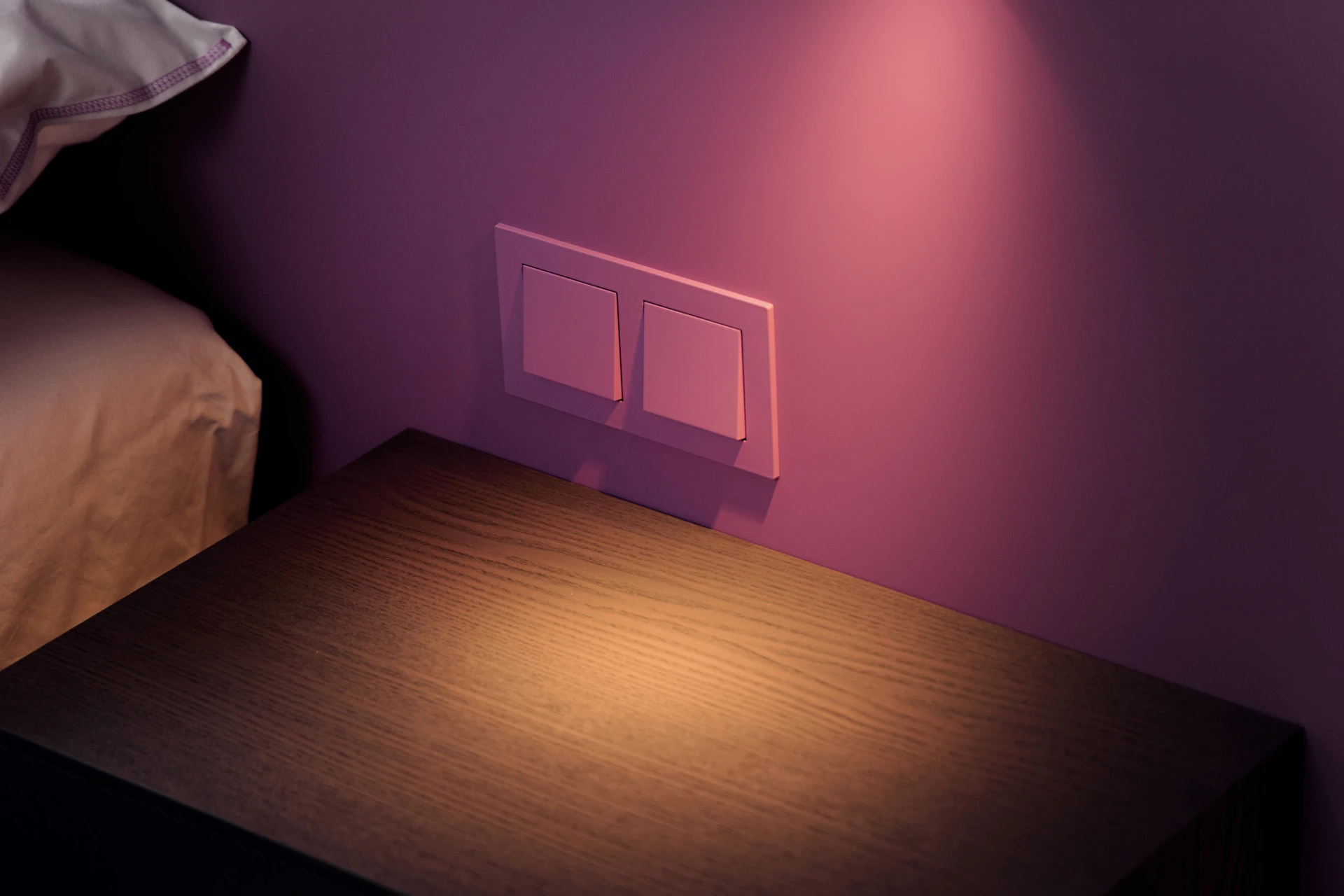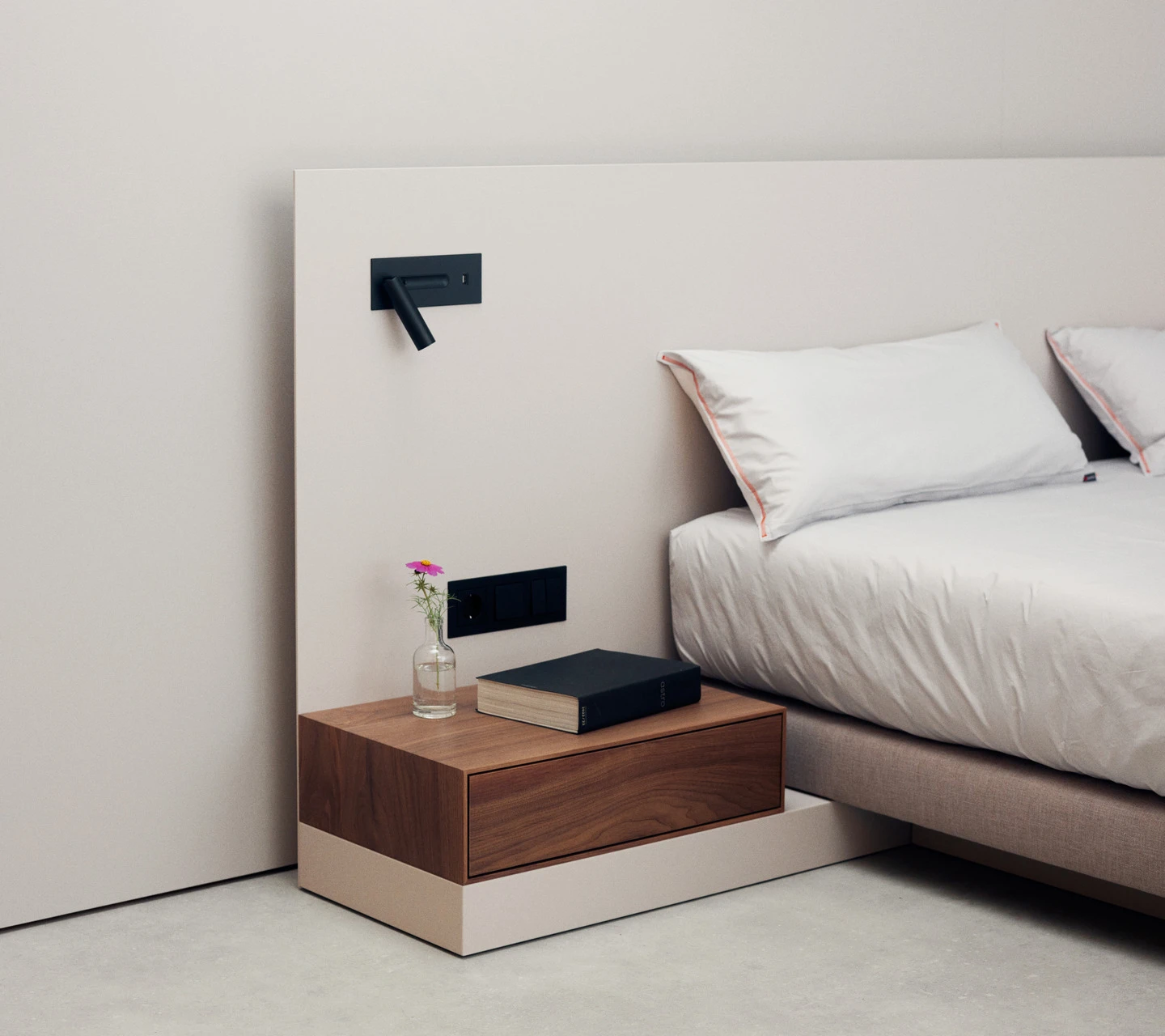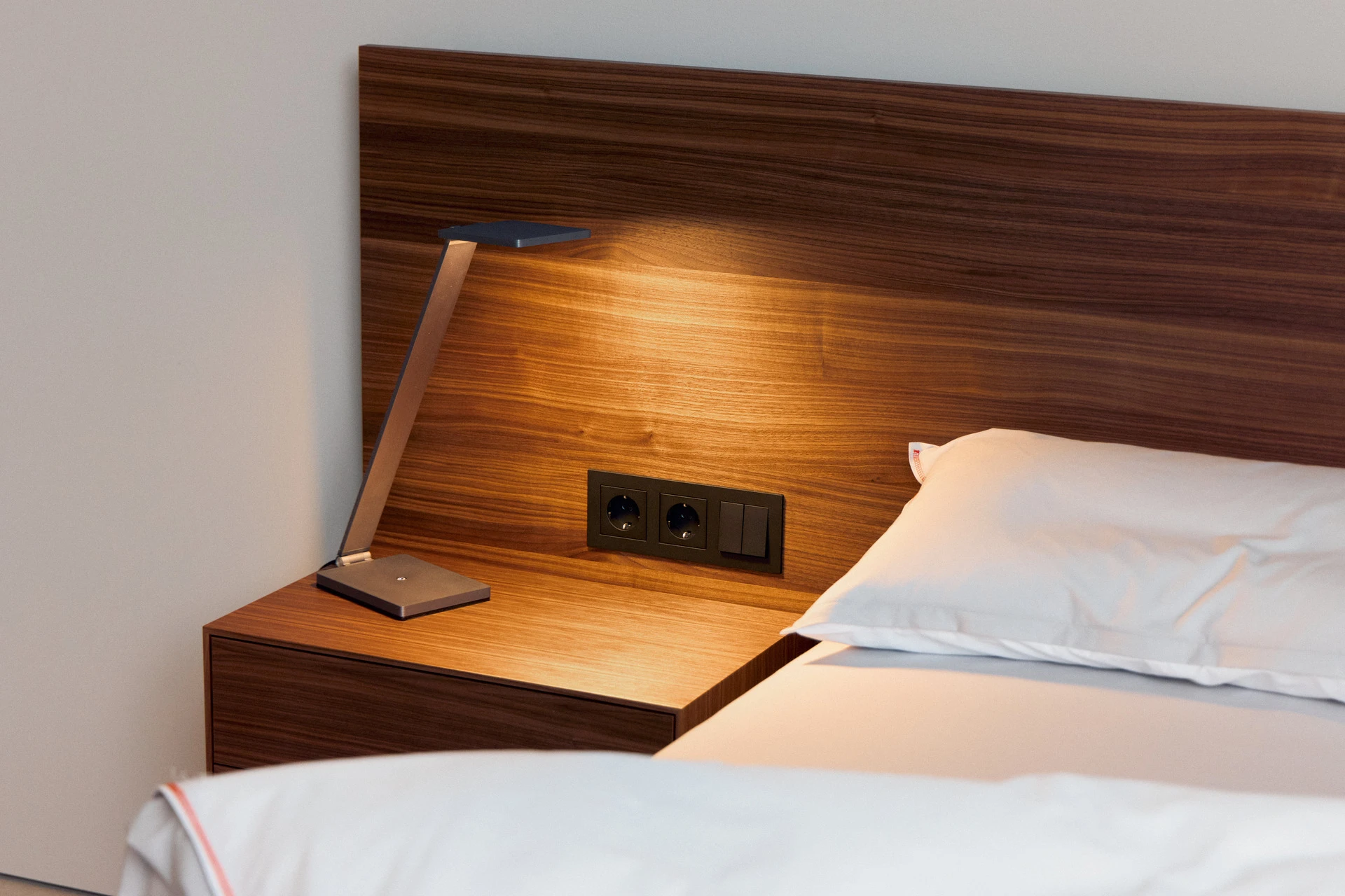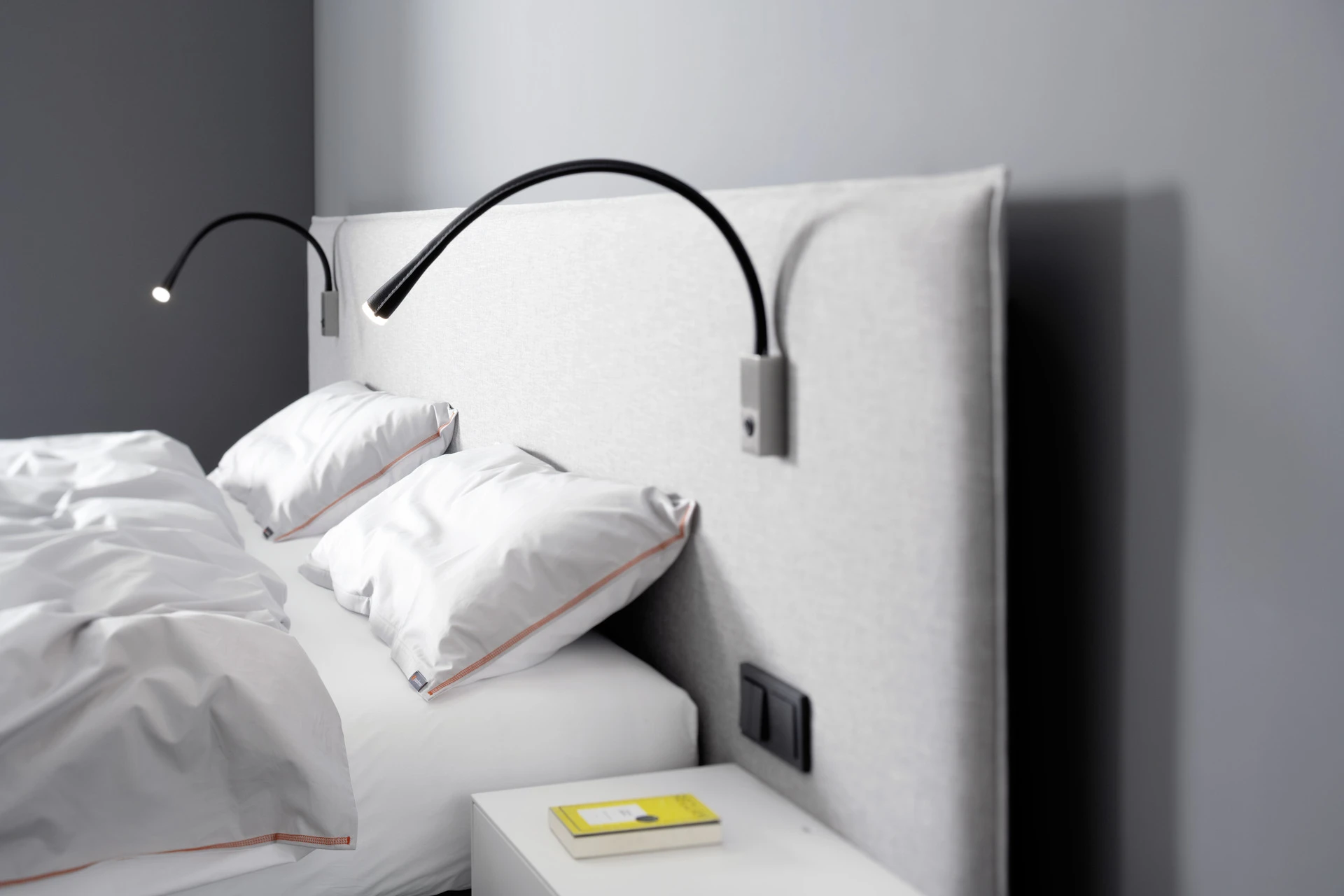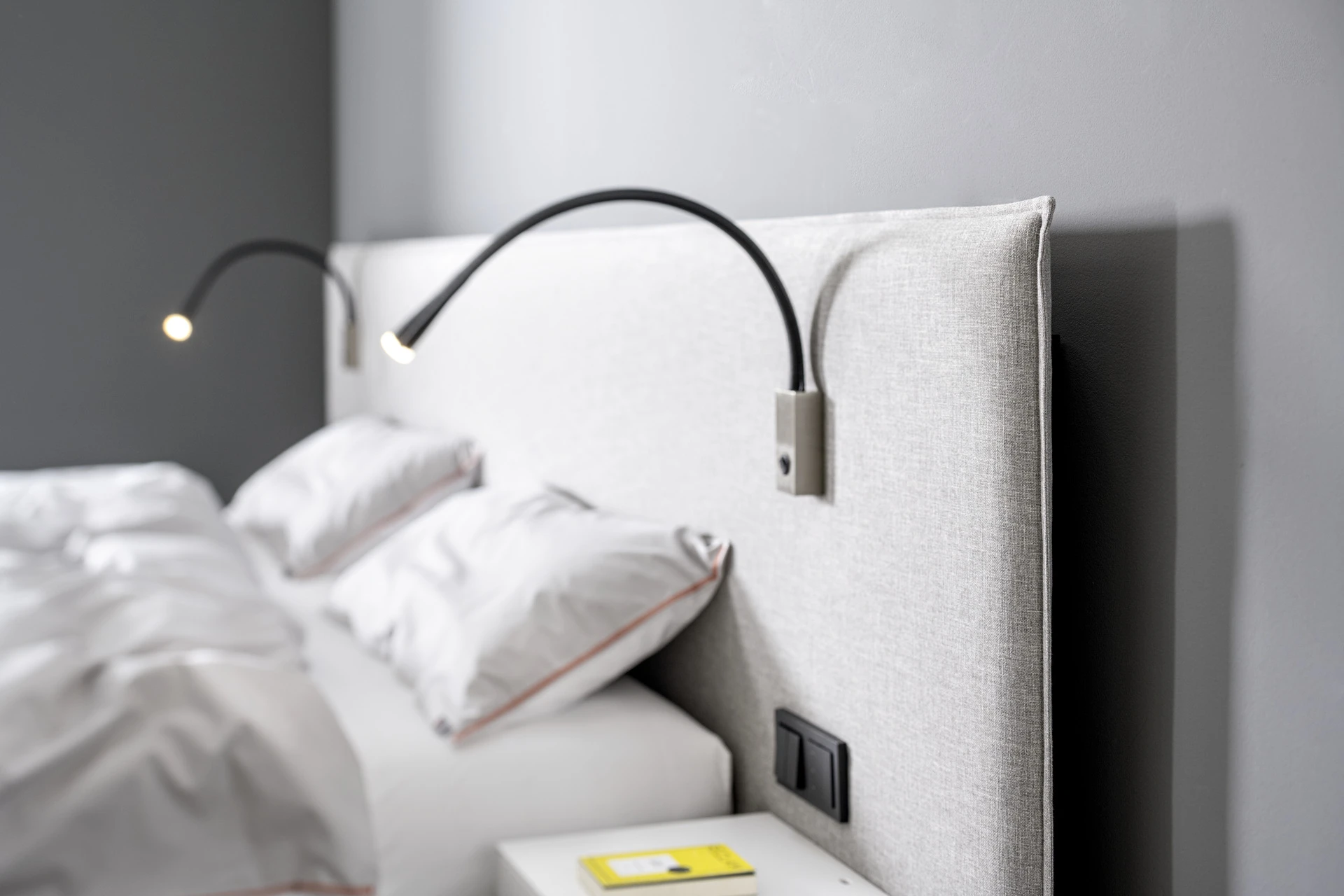 - Extra flache Schalter und Steckdosen in Bettfarbe lackiert