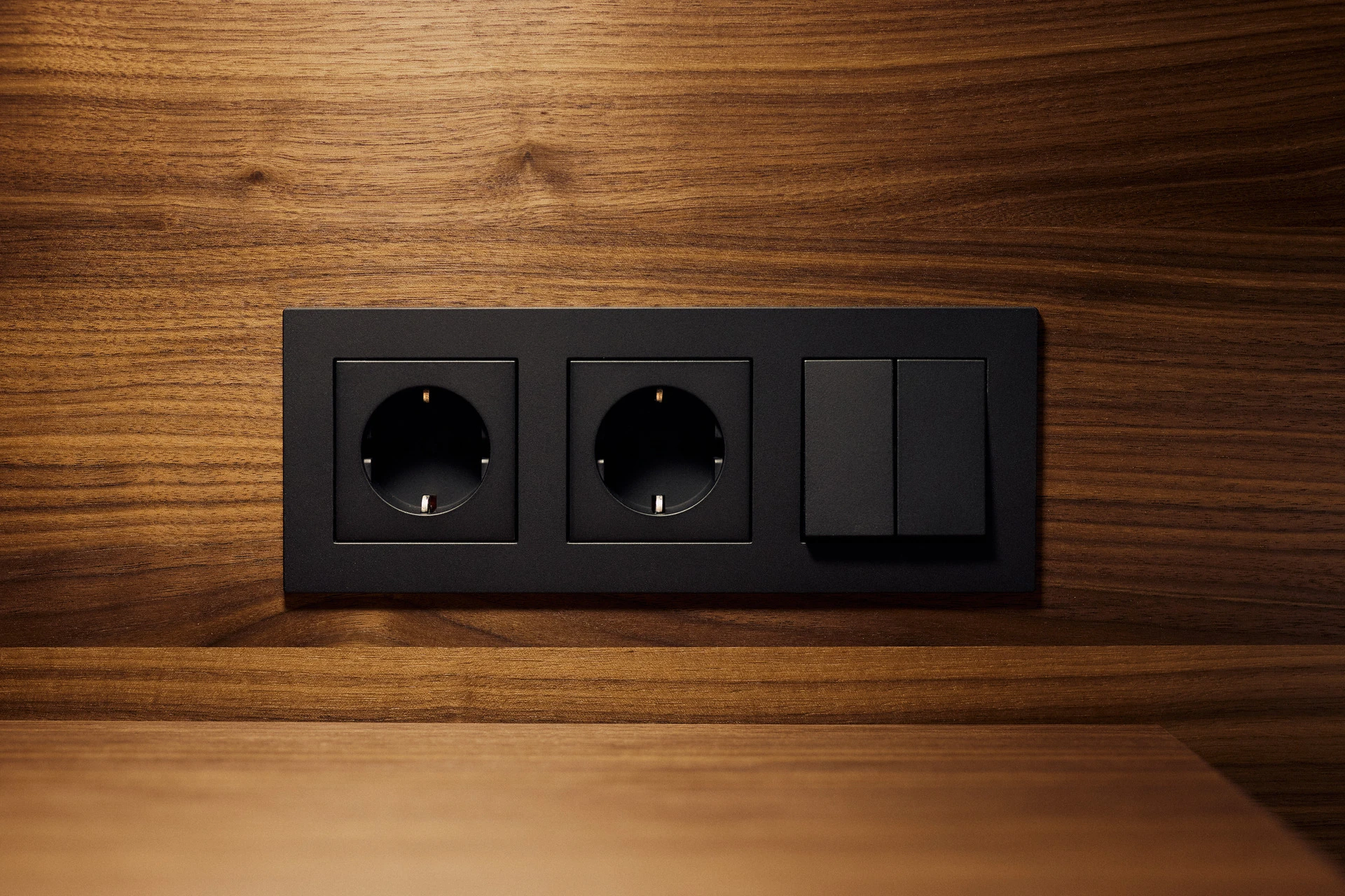 - Extra flache Schalter und Steckdosen in matt schwarz