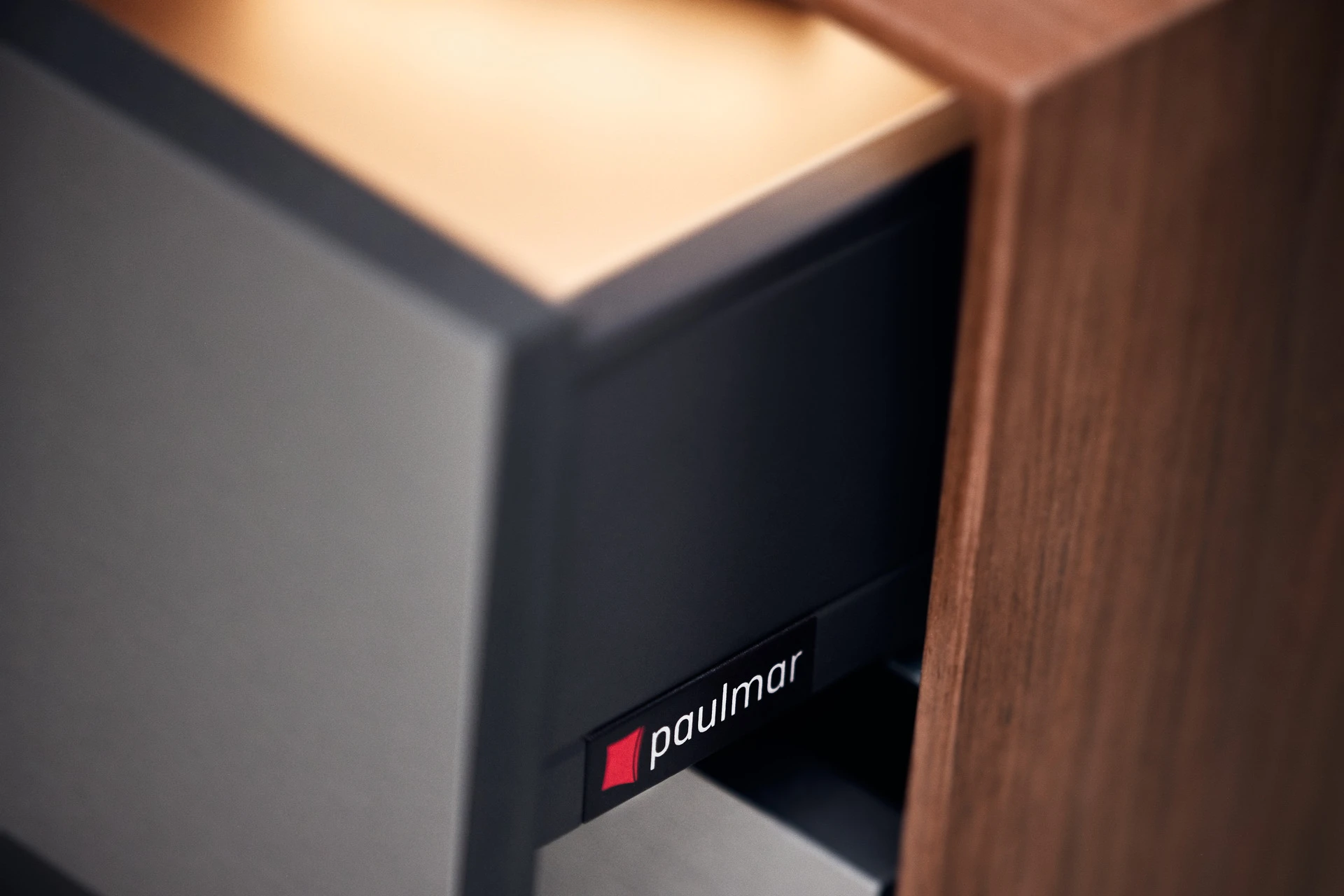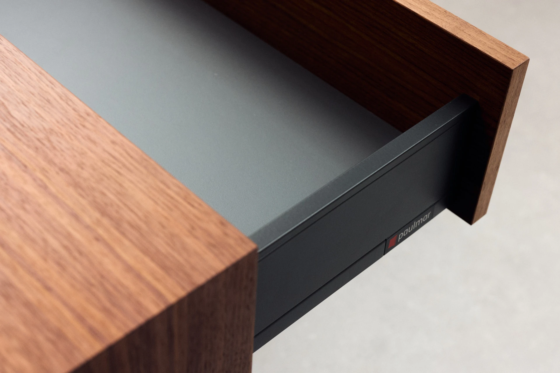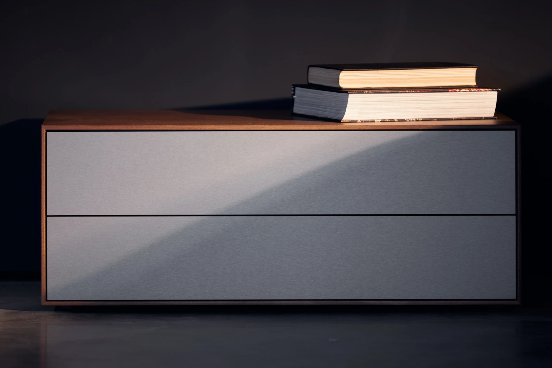 - Boxen mit Schubladen aus Nussbaum mit Touch-to-Open und Soft-Close Funktion