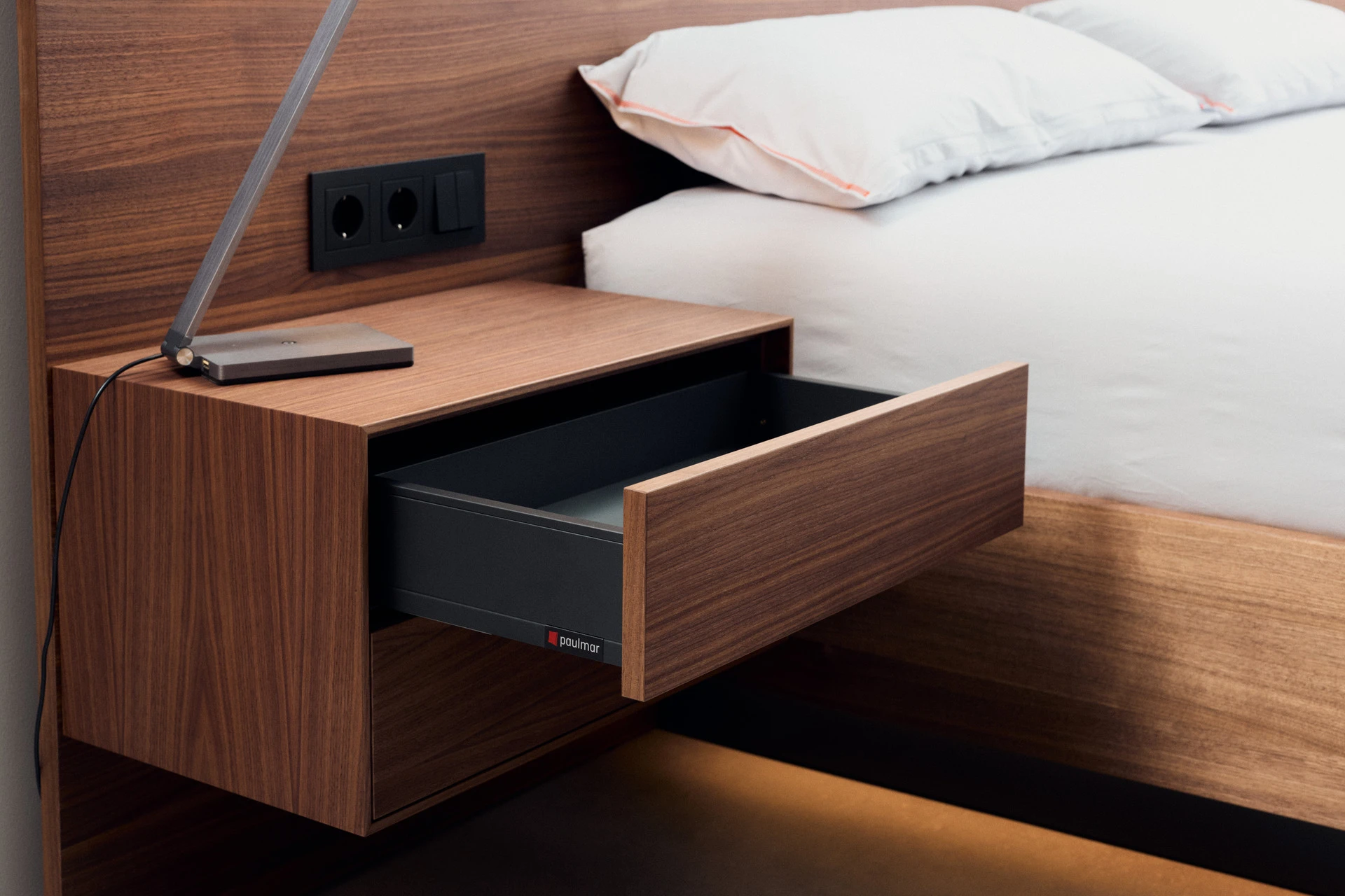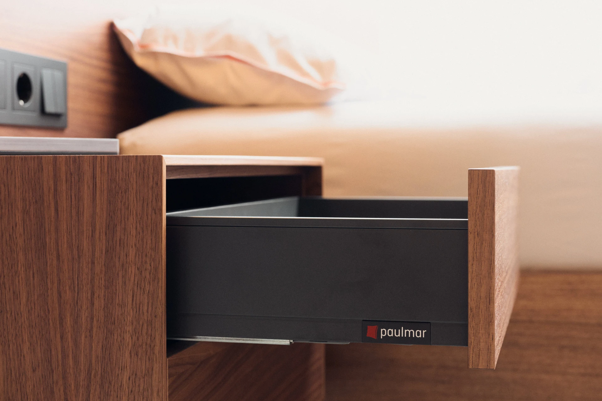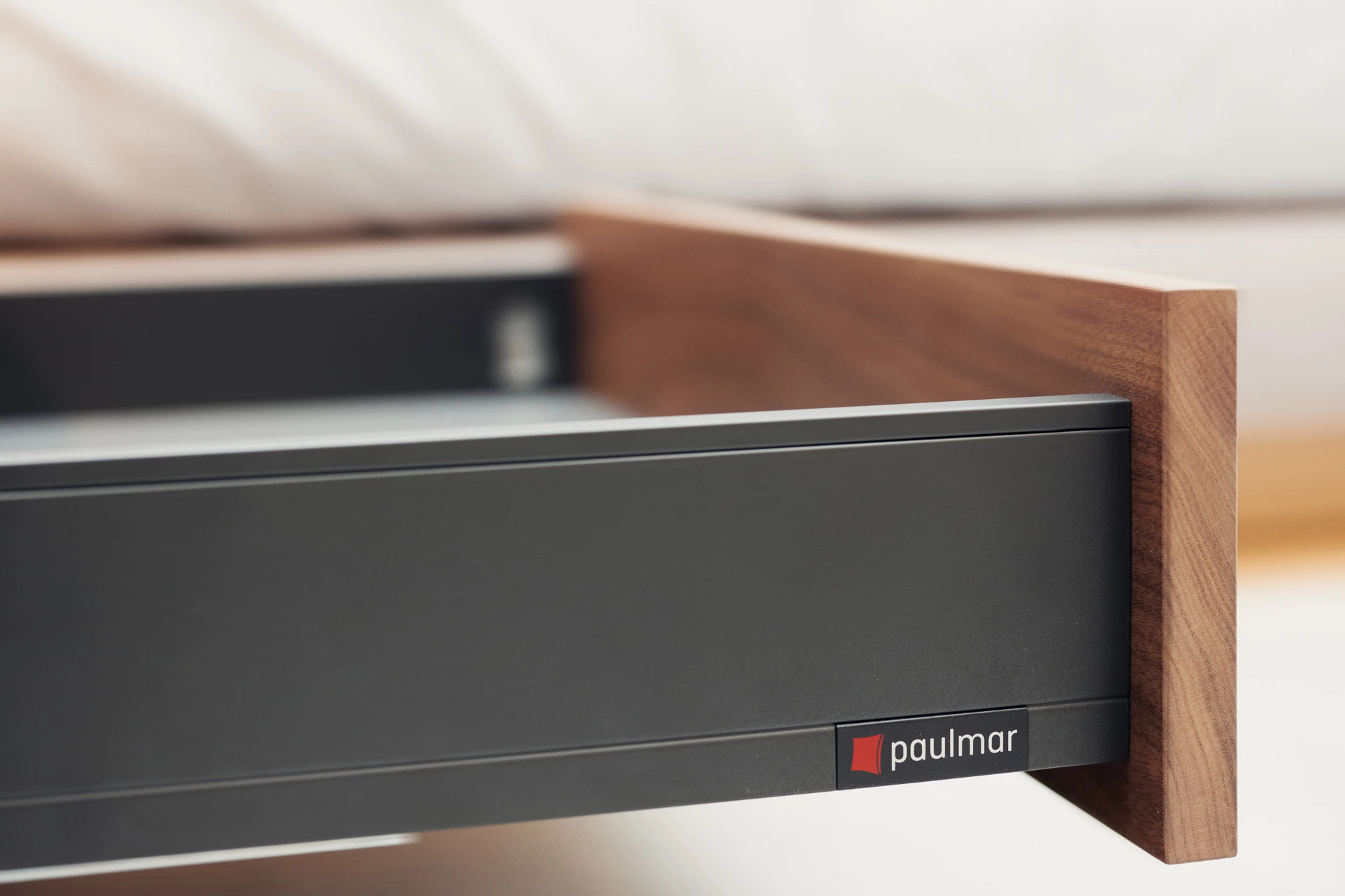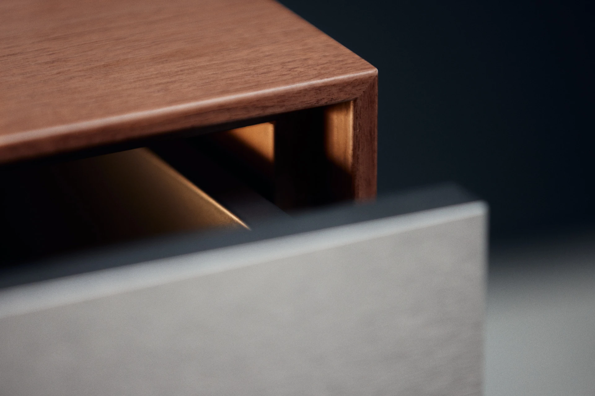 - Boxen mit Schubladen aus Nussbaum mit Touch-to-Open und Soft-Close Funktion