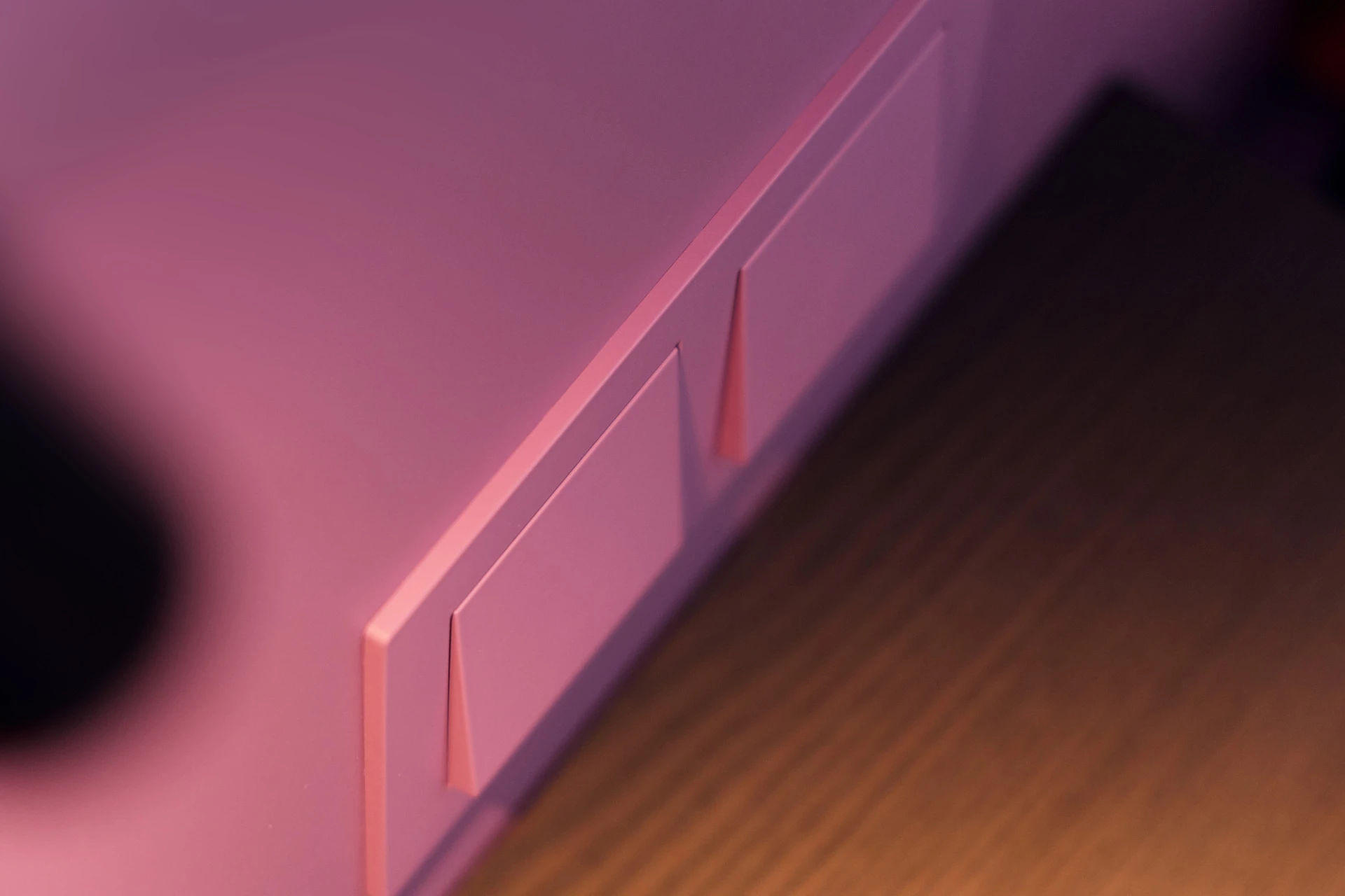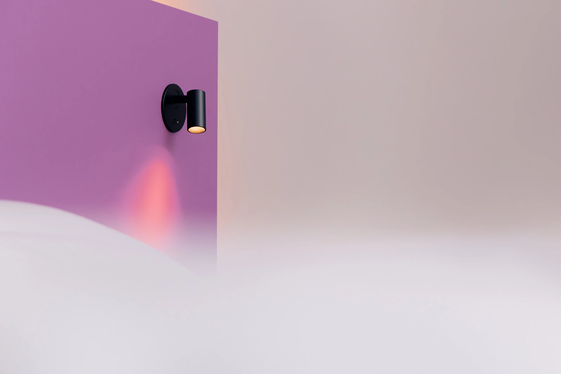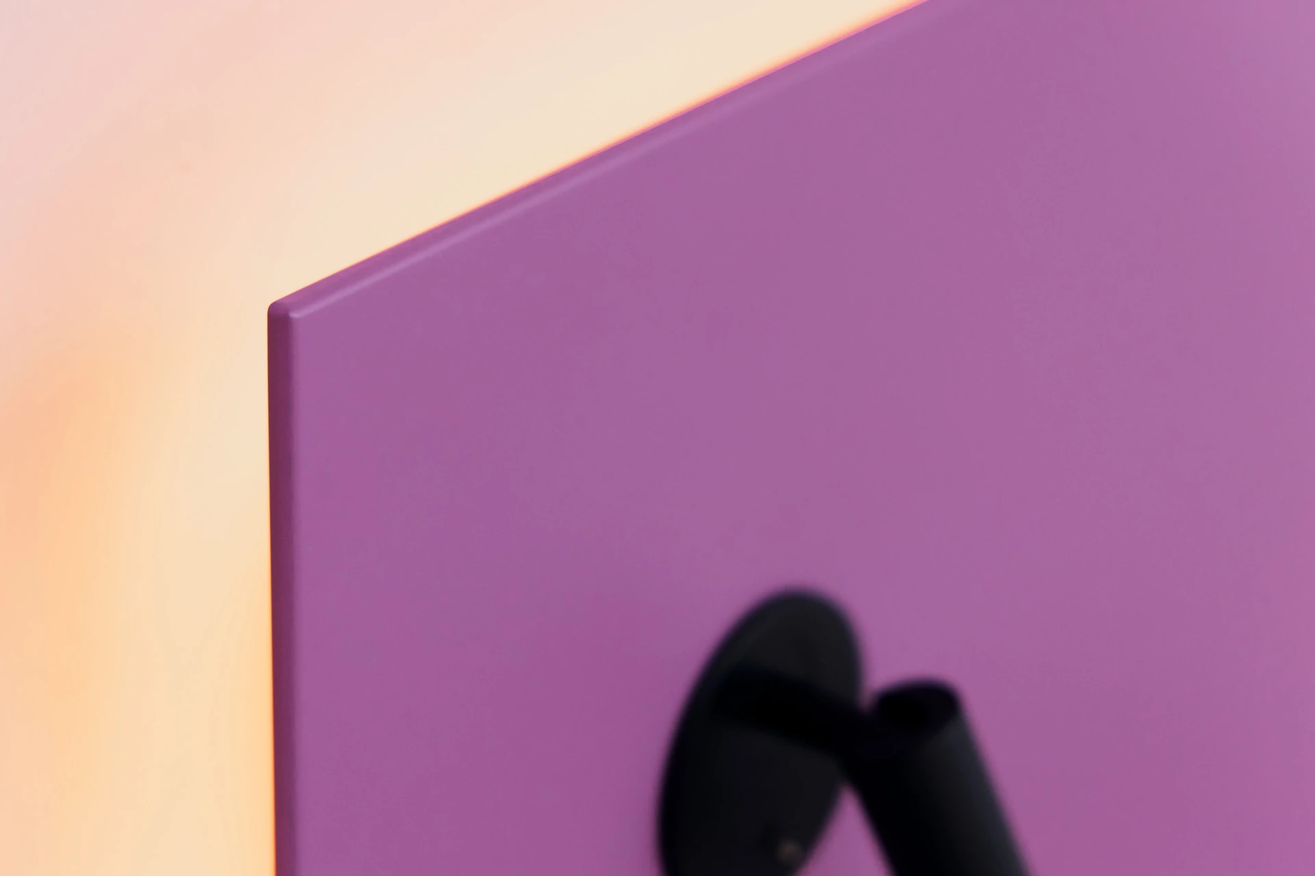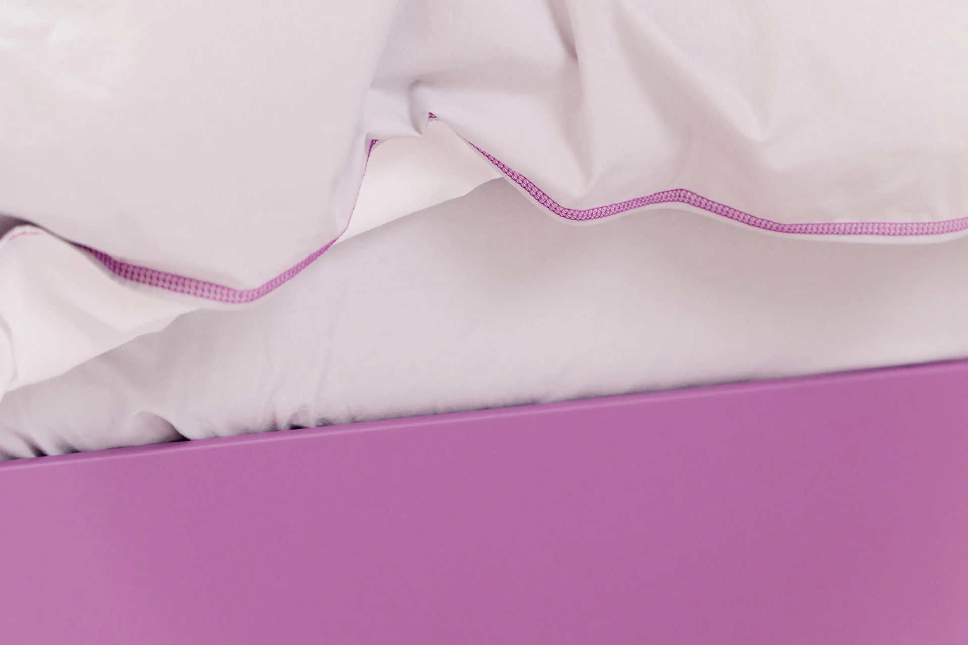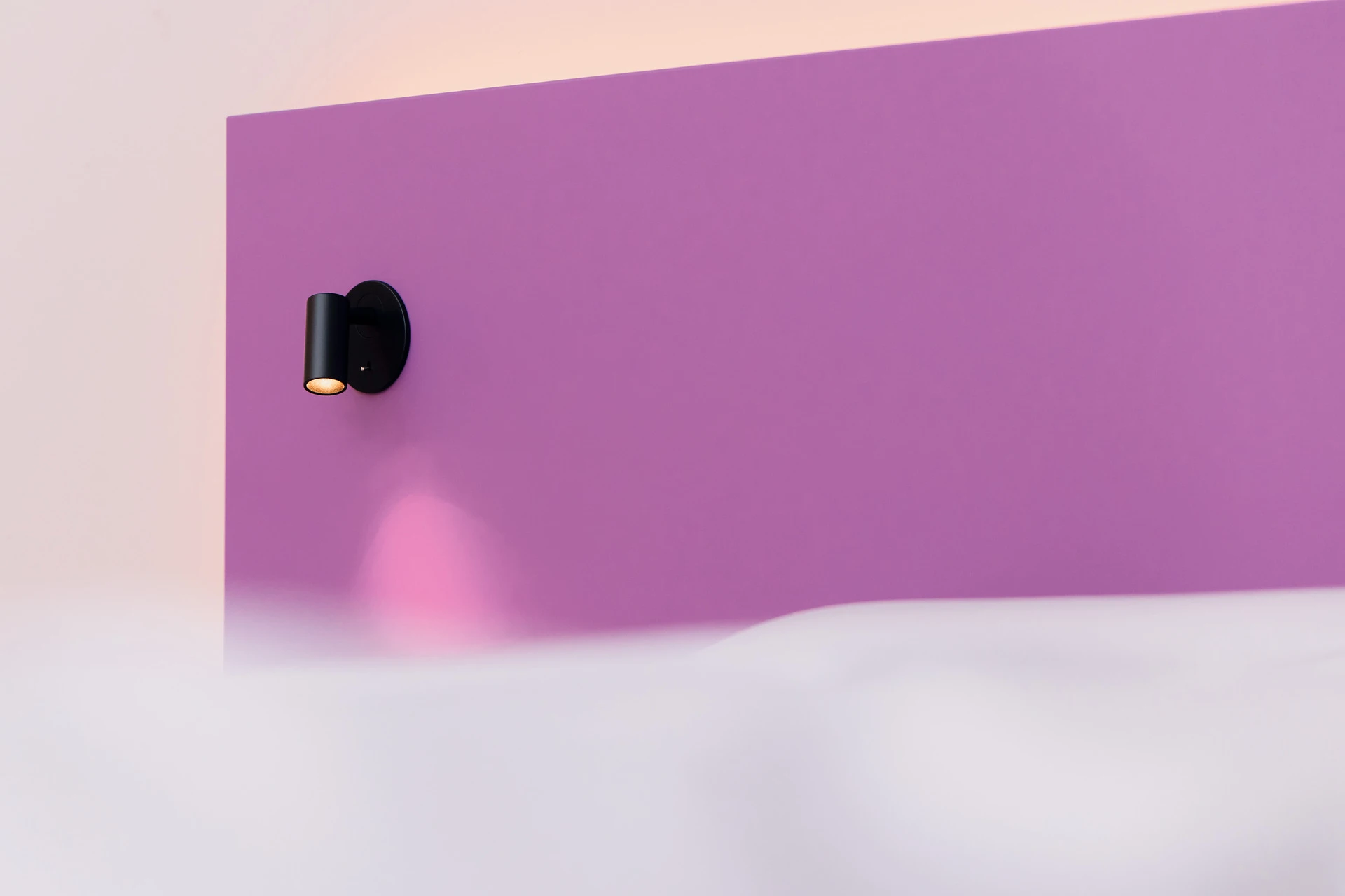 - Bettgestell und Wandpaneel in ultramatter, regenerativer Lackoberfläche in Flieder