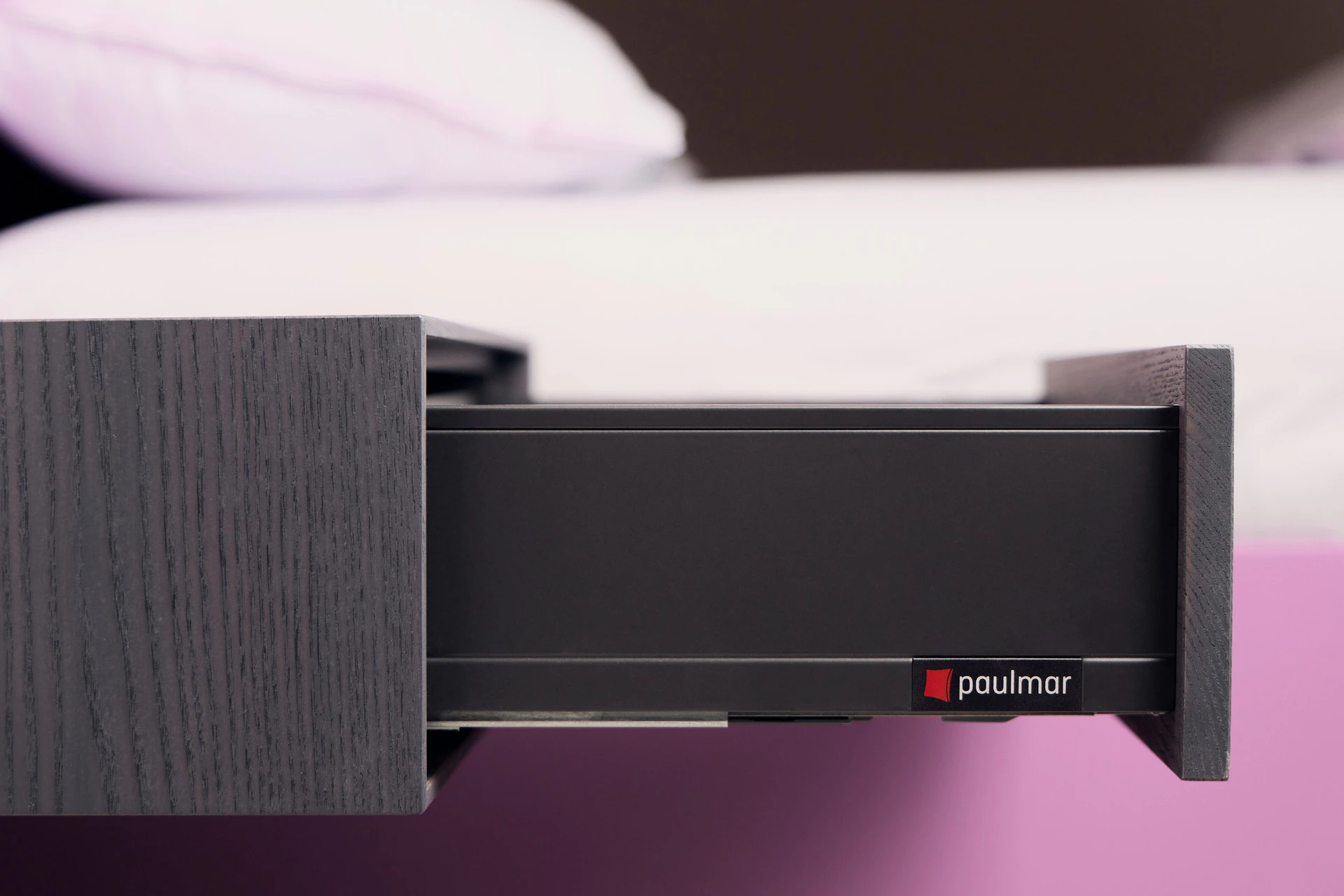 - Boxen aus schwarzer Fenix NTM-Kompaktplatte und Schublade mit Touch-to-Open und Soft-Close Funktion