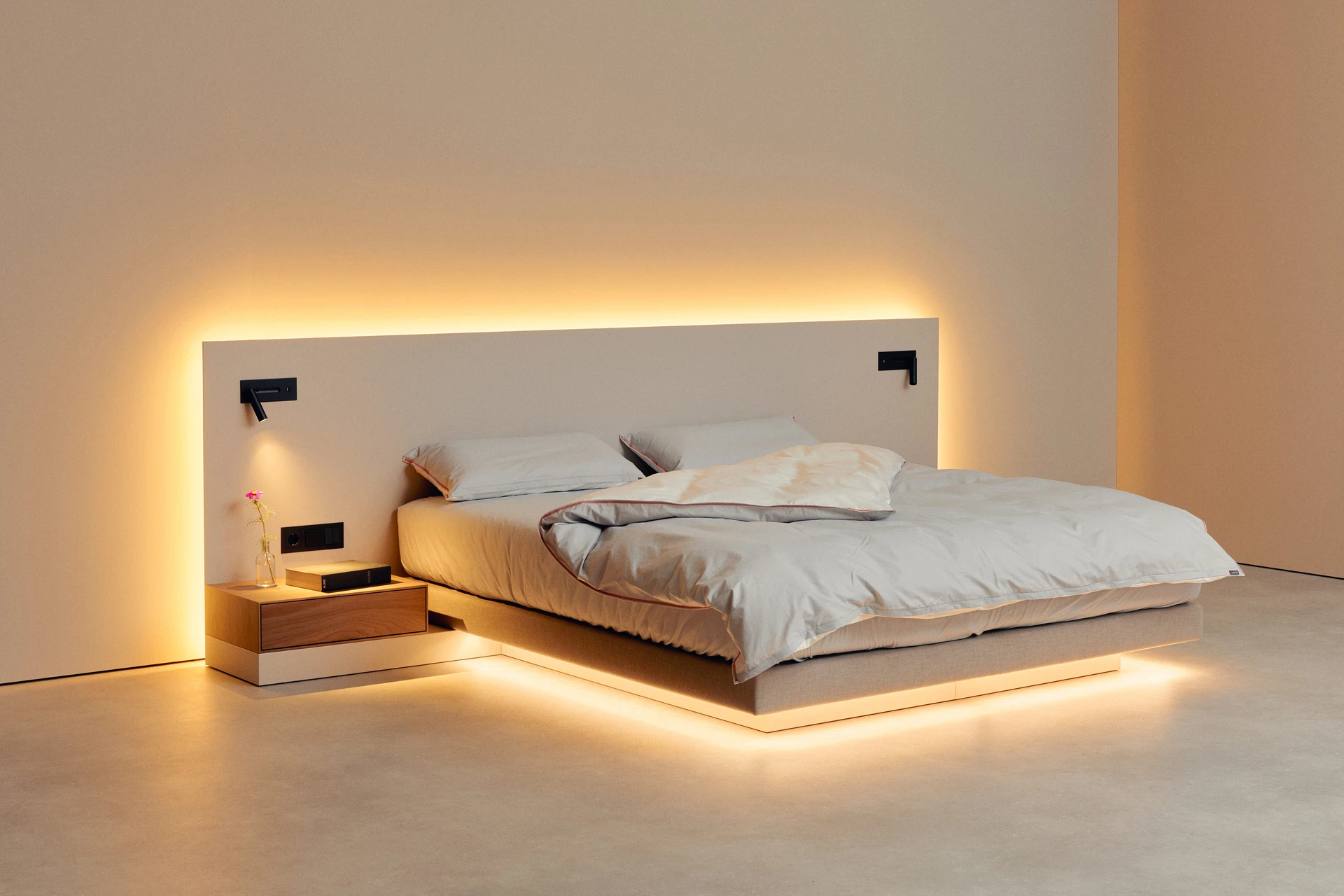 - Indirekte Unterbett- und Wandpaneel-Beleuchtung mit warmweißen LEDs