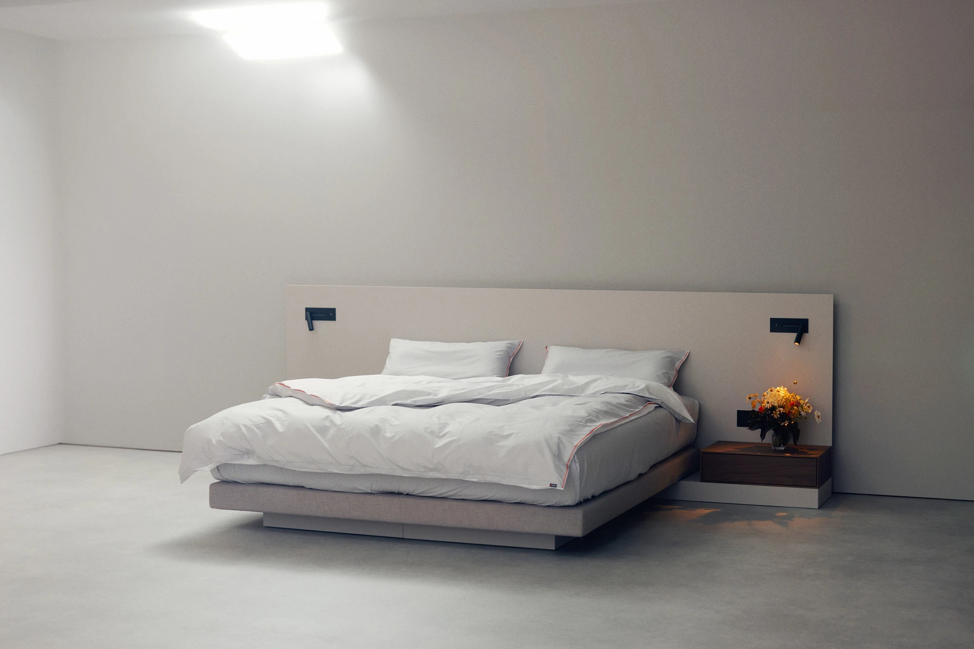 Ultraflaches Boxspringbett mit lackiertem Wandpaneel